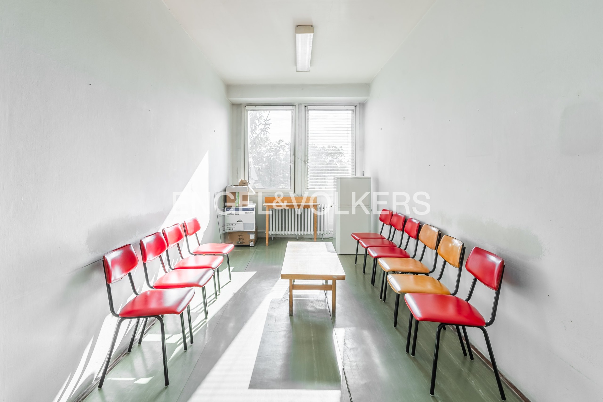 Fotografie jsou ilustrativní a místnost sousedí se společnou čekárnou na pravé straně.