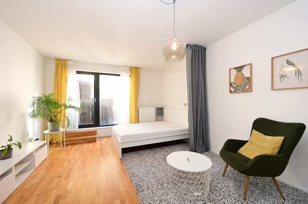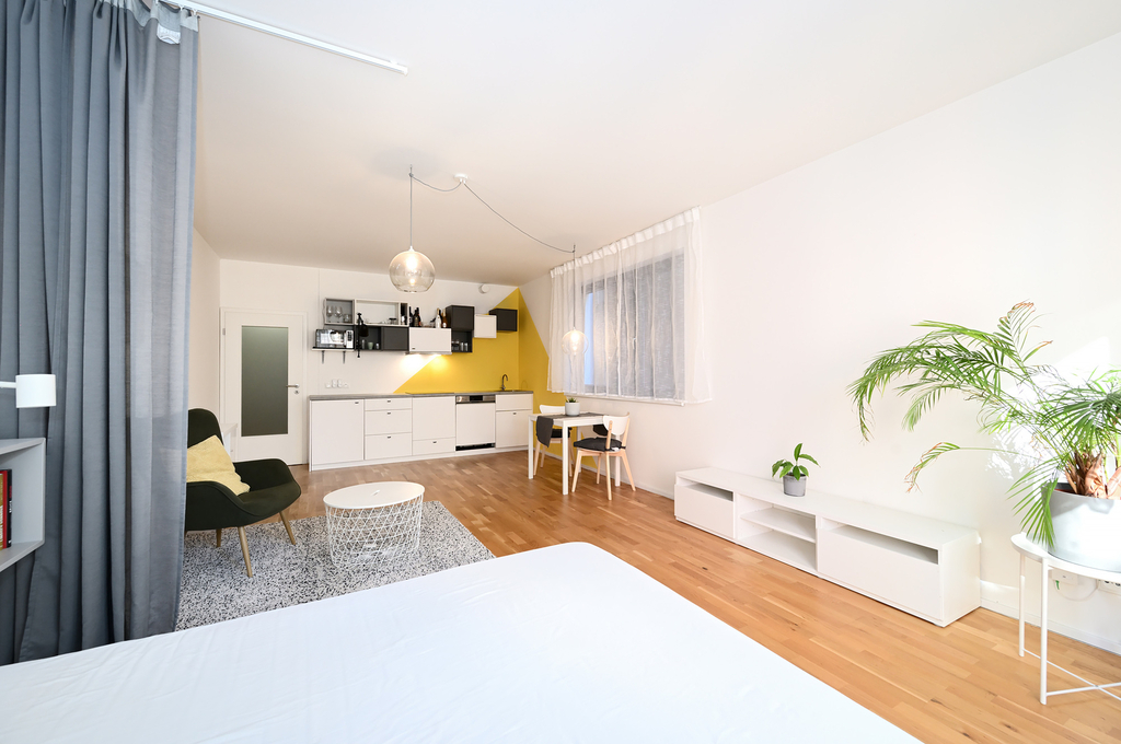 Park Rezidence Klamovka, kompletně vybavený byt 1+kk, 44 m² + sklep, ul. Plzeňská, Praha 5 – Smíchov