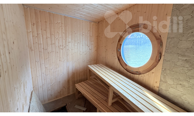 Aktuální stav: Hausbót je v rekonstrukci obytné plochy, nyní obývací pokoj s kuchyňským koutem, koupelna, ložnice a sauna (další pokoj). V kuchyni je lednička, myčka a dvouplotýnka.
