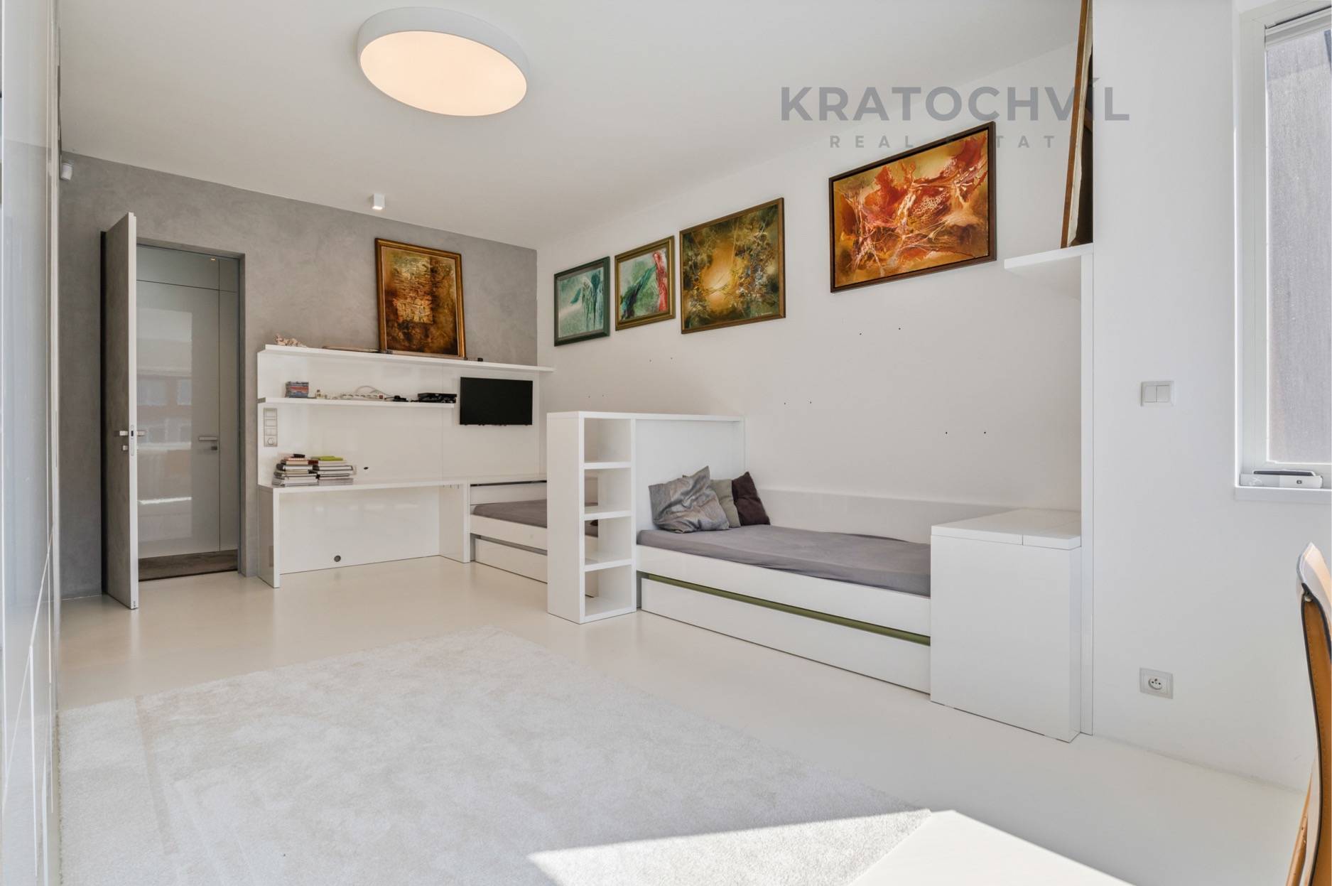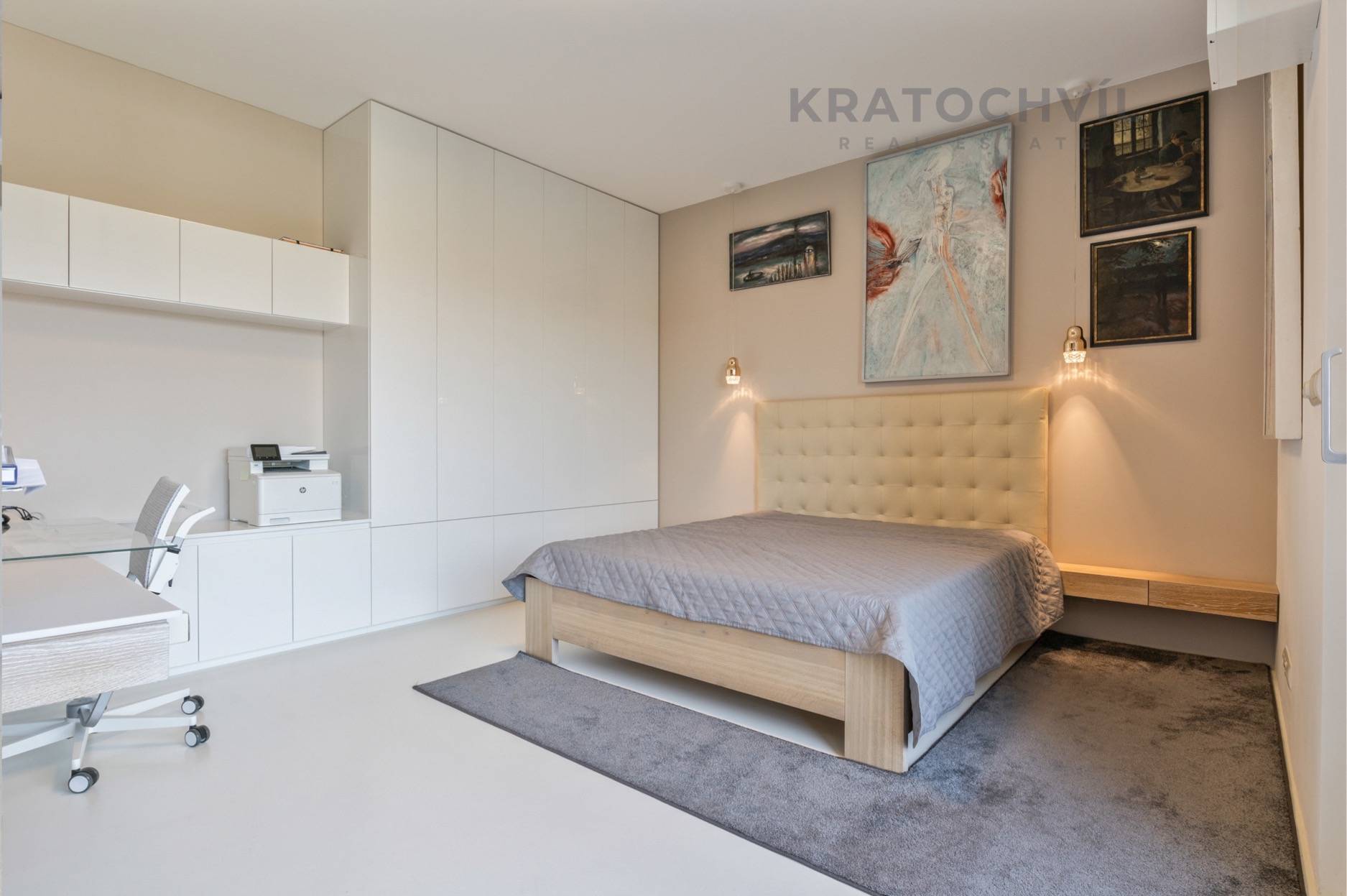 Dispozice 5+kk zahrnuje velkorysý obývací pokoj s kuchyní, čtyři samostatné ložnice, z toho jednu master bedroom s vlastní koupelnou, a celkem tři elegantní koupelny. Každý metr čtvereční je pečlivě navržen s důrazem na funkčnost, estetiku a komfort.