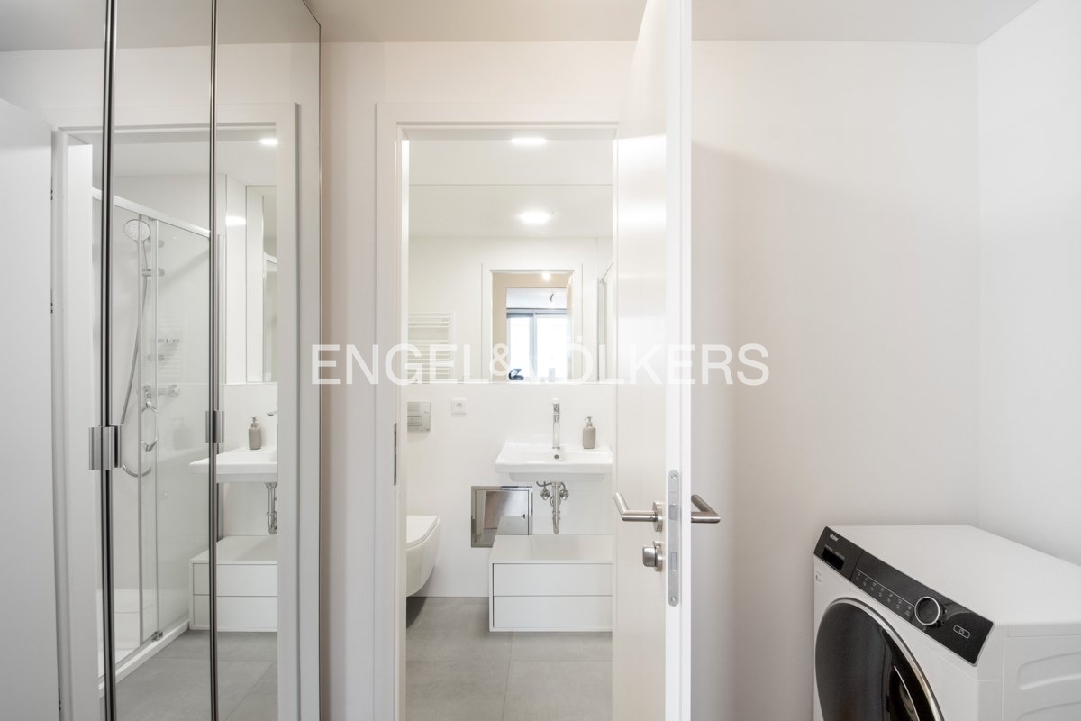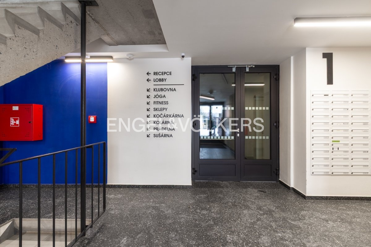 K bytu náleží hlídané parkovací stání před domem a sklepní kóje. Rezidenční komplex nabízí nadstandardní vybavení v podobě klubovny, fitness centra, jóga místnosti, kočárkárny, prádelny, sušárny a kolárny.