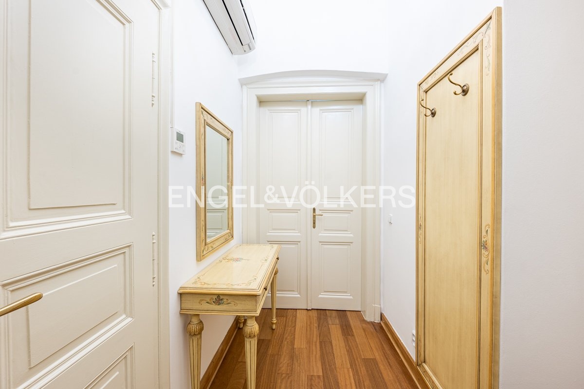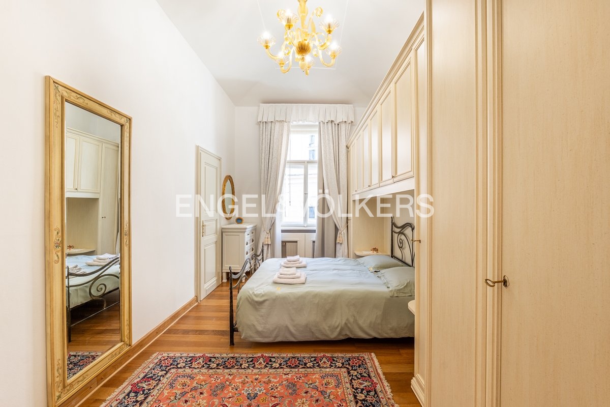 K okamžitému pronájmu nabízíme plně zařízený byt s dispozicí 3+kk. Byt se nachází v 3. nadzemním podlaží historického činžovního domu s výtahem. V bytě jsou zachovány původní prvky a je kompletně vybaven nábytkem v italském stylu. Byt nabízí obývací pokoj s plně vybavenou kuchyní včetně nádobí a jídelním koutem. Jedna z ložnic je orientována do vnitrobloku a druhá s rozkládací sedačkou je orientována do ulice. Součástí vybavení koupelny je vana a pračka. Toaleta je samostatná. K dispozici je kvalitní italské ložní prádlo a ručníky, je možné zajistit pravidelný úklid.