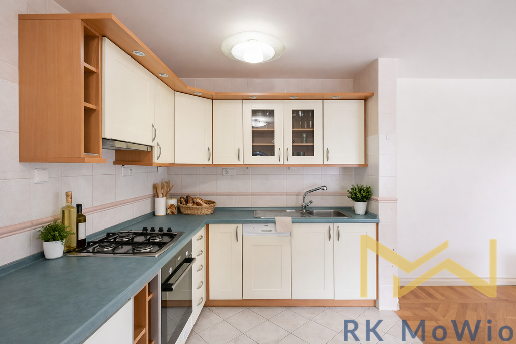 Půdorys bytové jednotky je řešen ve dvou úrovních. Ve spodním podlaží se nachází vstupní chodba, obývací pokoj s plně vybavenou kuchyní a jídelní částí, jedna ložnice a koupelna (vana, bidet, umyvadlo, toaleta). V horním patře je umístěna klimatizovaná ložnice s vlastní šatnou a koupelnou (sprchový kout, bidet, umyvadlo, toaleta). Vybavení bytu zahrnuje kuchyňskou linku se spotřebiči (myčka, trouba, varná deska), pračku, sušičku, dřevěné podlahy a dlažbu, bezpečnostní vstupní dveře, vnitřní rolety a plynový kotel.