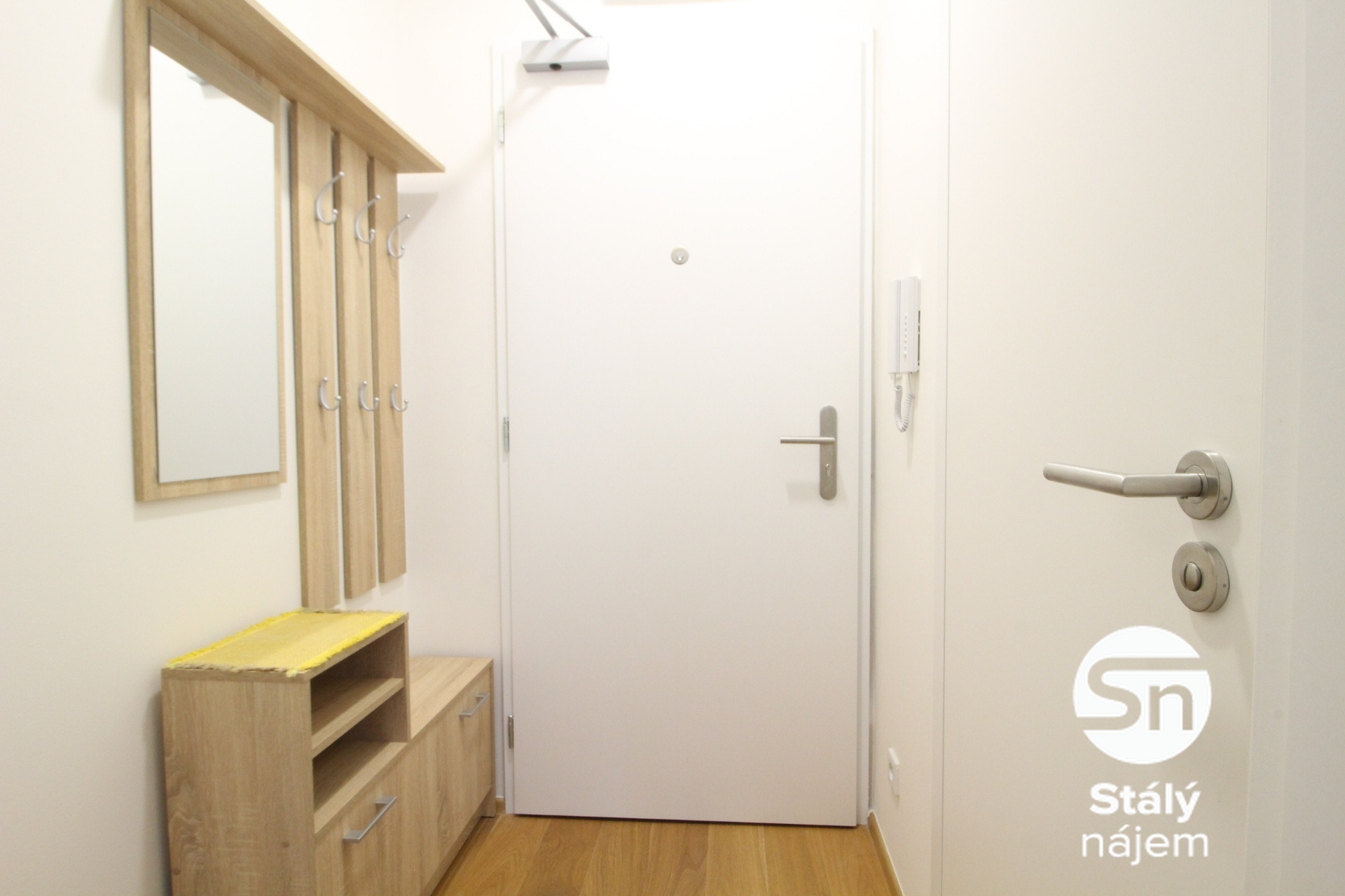 Byt zaujme moderním vybavením, útulností a praktických prvků. Interiér bytu tvoří obývací pokoj s kuchyňskou linkou, vybavenou špičkovými spotřebiči: varnou deskou, troubou, lednicí s mrazákem, mikrovlnnou troubou a pračkou .Luxusní koupelna je vybavena sprchovým koutem, umyvadlem a WC, poskytující maximální pohodlí a eleganci.