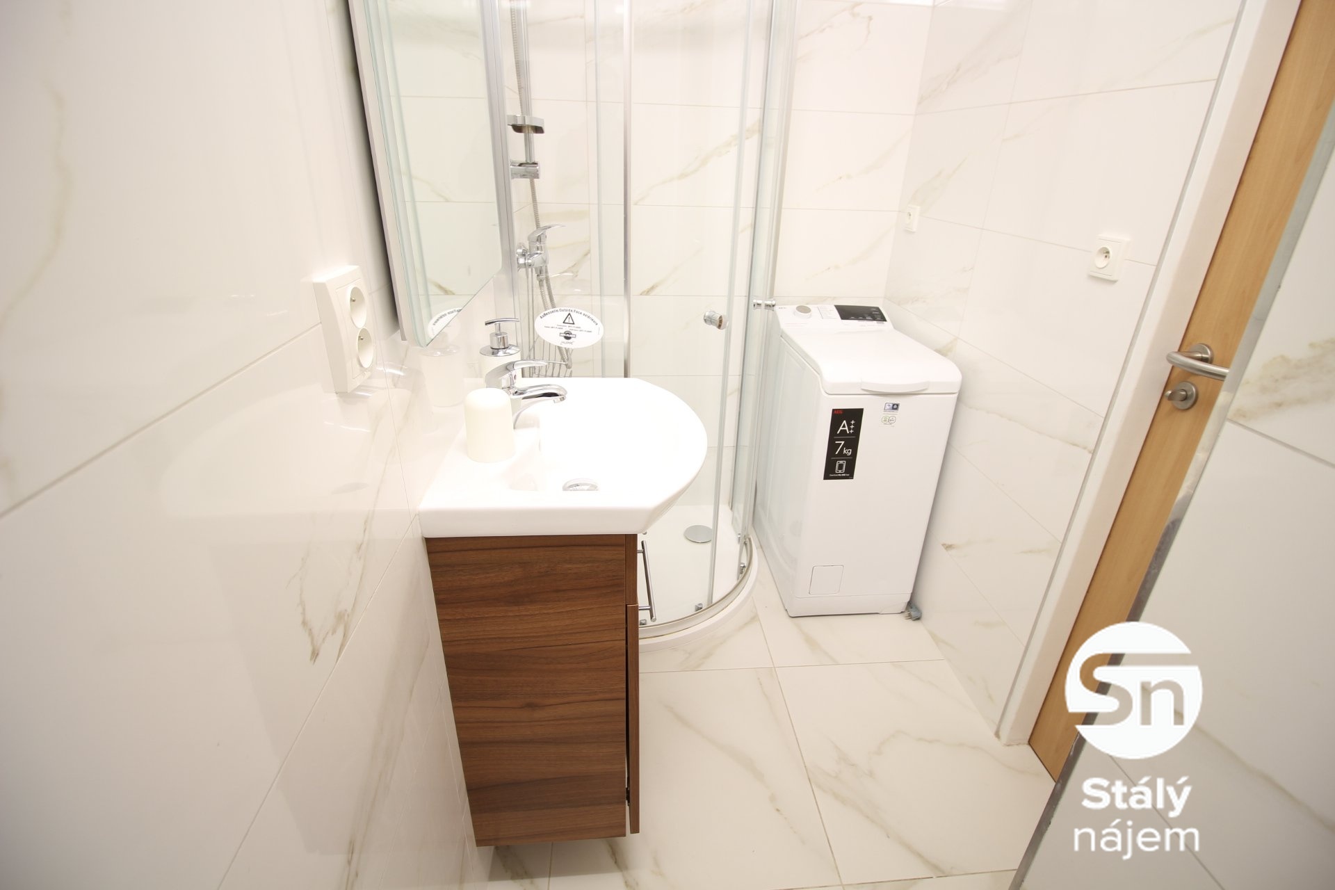 Byt je kompletně vybaven stylovým nábytkem a moderními spotřebiči. Dominantou je obývací pokoj s kuchyňským koutem, kde najdete novou linku s varnou deskou, troubou, lednicí i mikrovlnkou. Pro váš komfort je zde instalována klimatizace, barové sezení, pohodlný gauč a televizní stěna. V ložnici se nachází postel. Koupelna disponuje sprchovým koutem, pračkou a skříňkou pod umyvadlem, přičemž toaleta s praktickou bidetovou sprchou je umístěna samostatně.