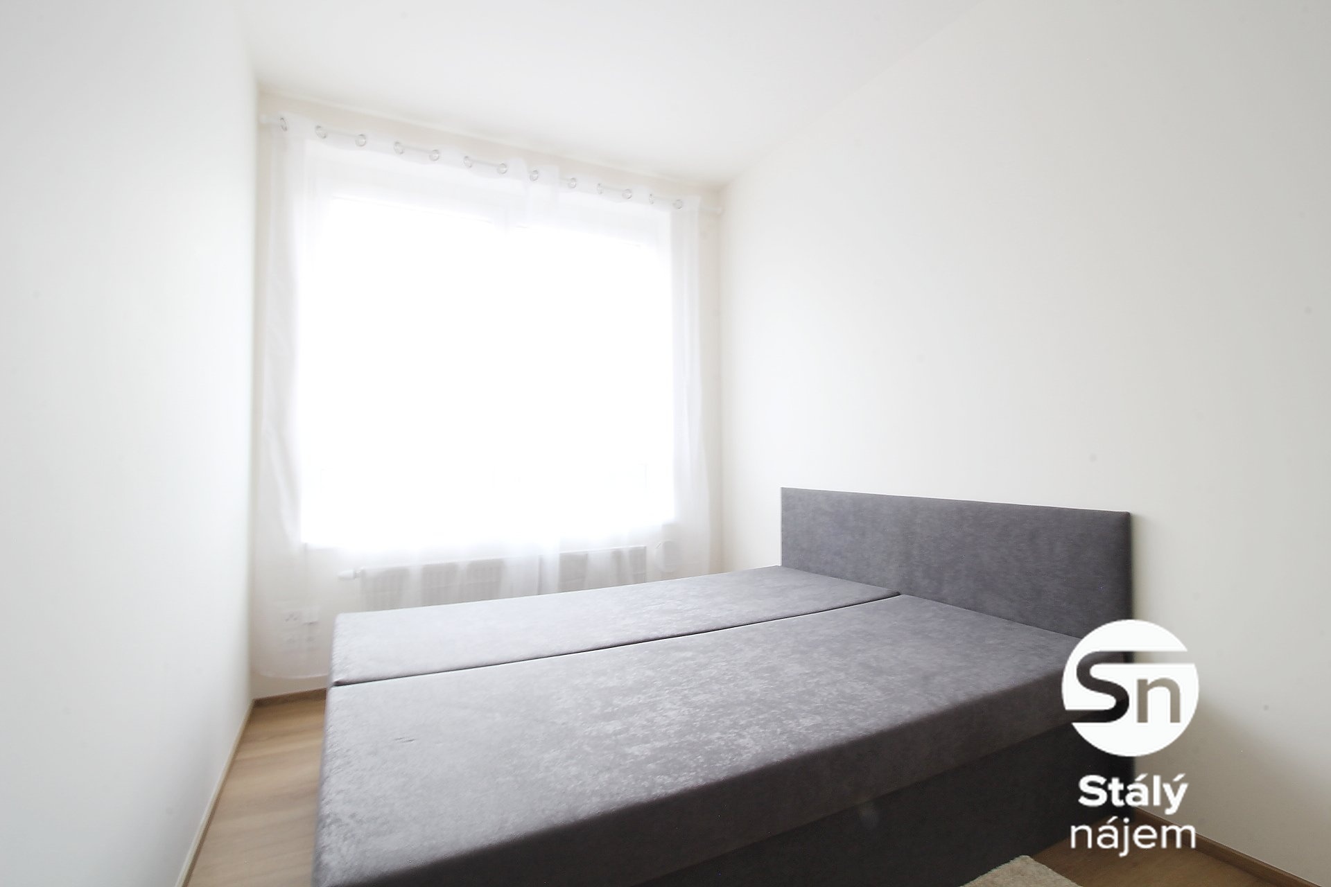 Ložnice je vybavena dvoulůžkovou postelí a dostatečným prostorem, který lze využít jako šatnu.