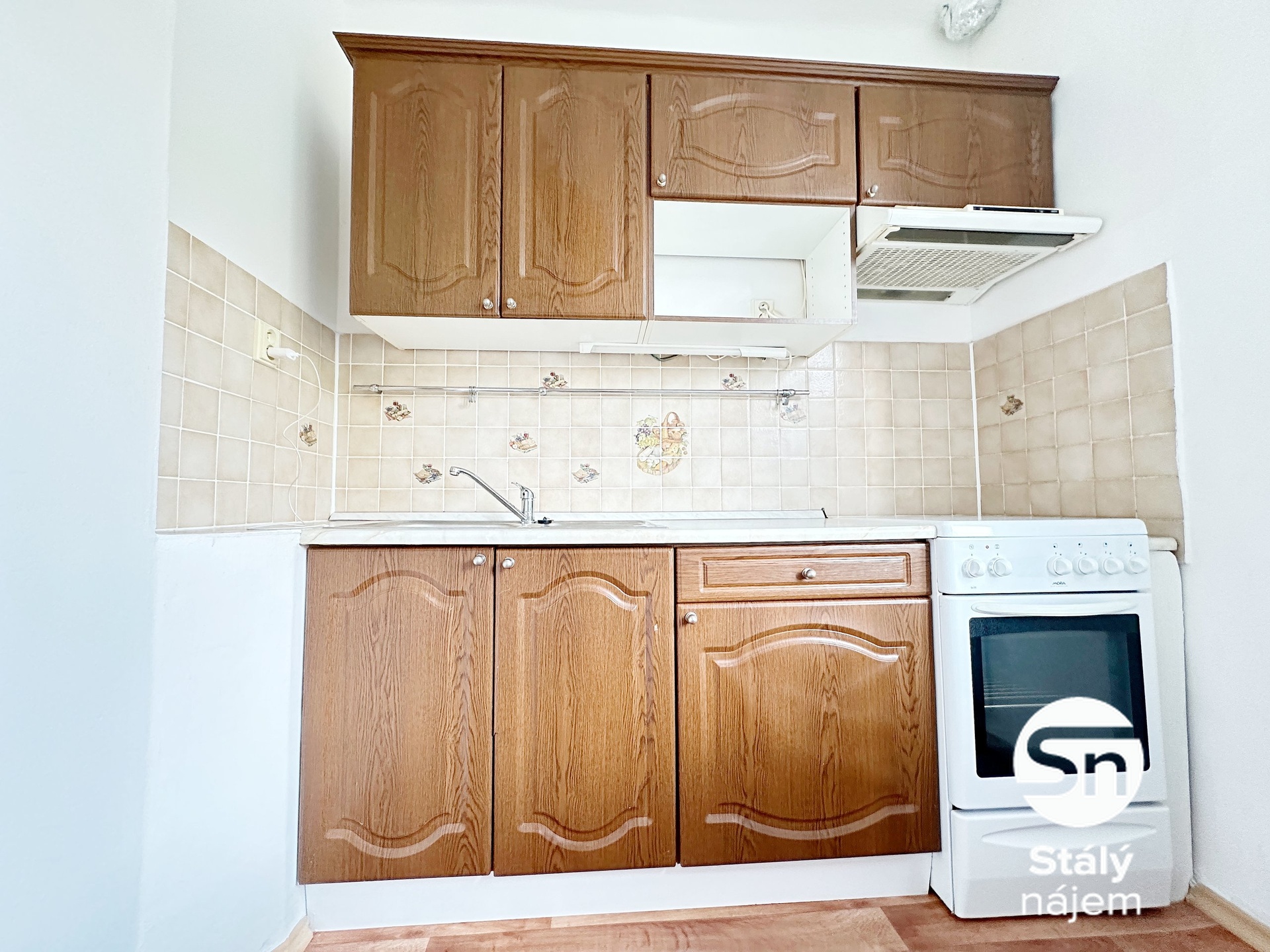 Kuchyně bytu je zařízena kuchyňskou linkou s kombinovaným sporákem, digestoří a lednicí s mrazákem. Dále je zde prostorný nezařízený obývací pokoj a druhý pokoj, který krásně poslouží jako ložnice. Zděná koupelna je s vanou. V předsíni je dostatek úložných prostor v podobě vestavěné skříně. K dispozici je také komora s policemi. Na podlaze v pokojích je plovoucí podlaha a ve zbylých částech bytu je dlažba, v oknech jsou žaluzie.
