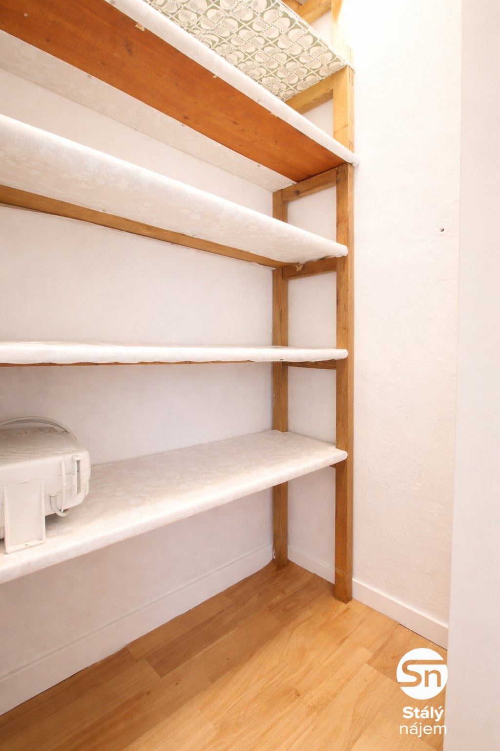 Kuchyň je vybavena kuchyňskou linkou se spotřebiči, jako jsou elektrická dvouplotýnková varná deska a digestoř. Obývací pokoj je nezařízený, takže si jej můžete zařídit dle vlastních představ. Další pokoj je také nezařízený a hezky poslouží jako ložnice nebo dětský pokoj. Koupelna disponuje vanou, umyvadlem s úložnou skříňkou a pračkou. Toaleta je samostatně. Součástí bytu je komora, ve které je policová skříň.