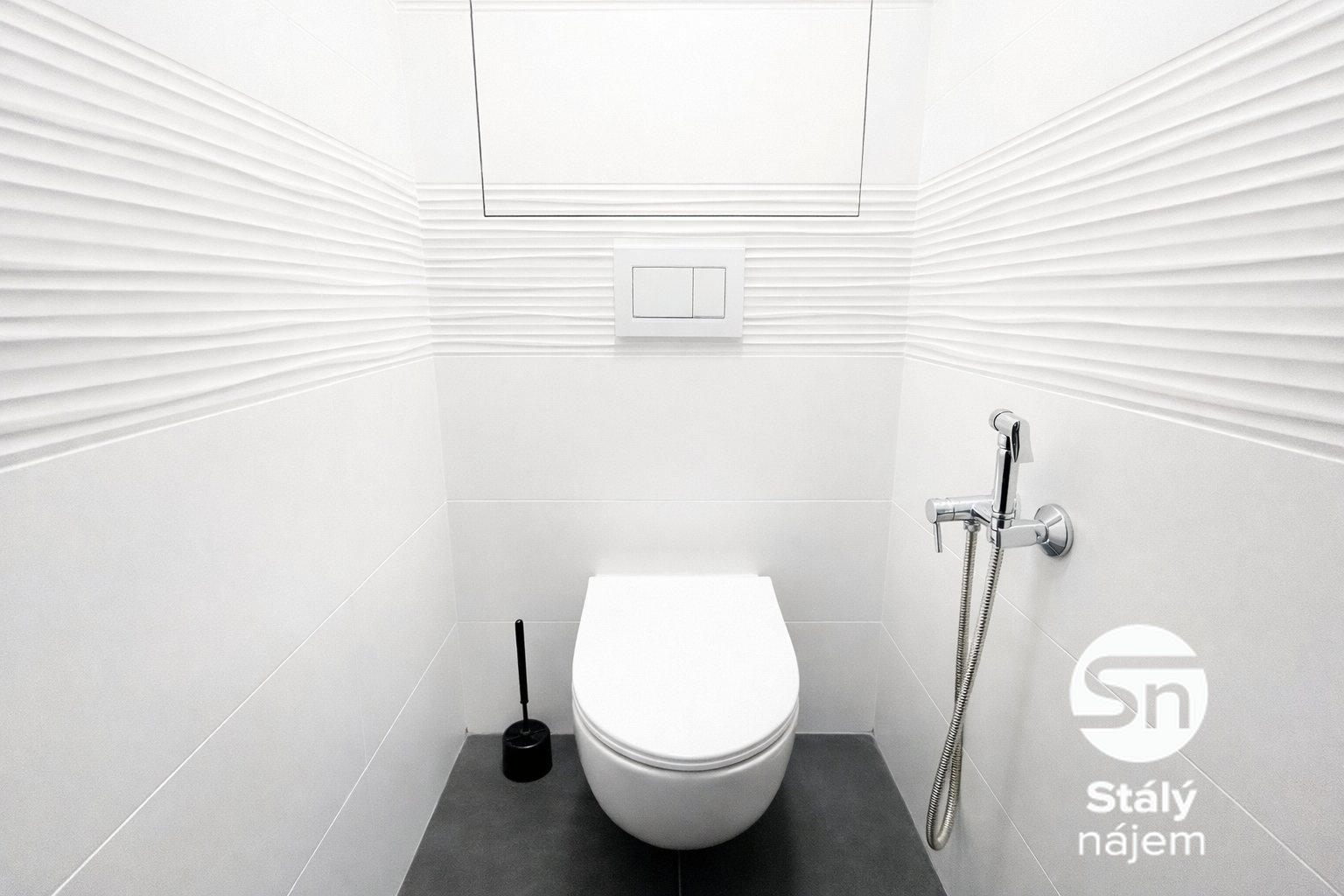 Byt je vybaven kuchyňskou linkou se spotřebiči (plynový sporák, elektrická trouba, myčka). Koupelna disponuje sprchovým koutem, umyvadlem se zrcadlem a přípravou na pračku i sušičku, toaleta je samostatná s bidetovou sprškou. Bezpečnost zajišťují vstupní bezpečnostní dveře, v chodbě jsou k dispozici vestavěné skříně a úložné police.