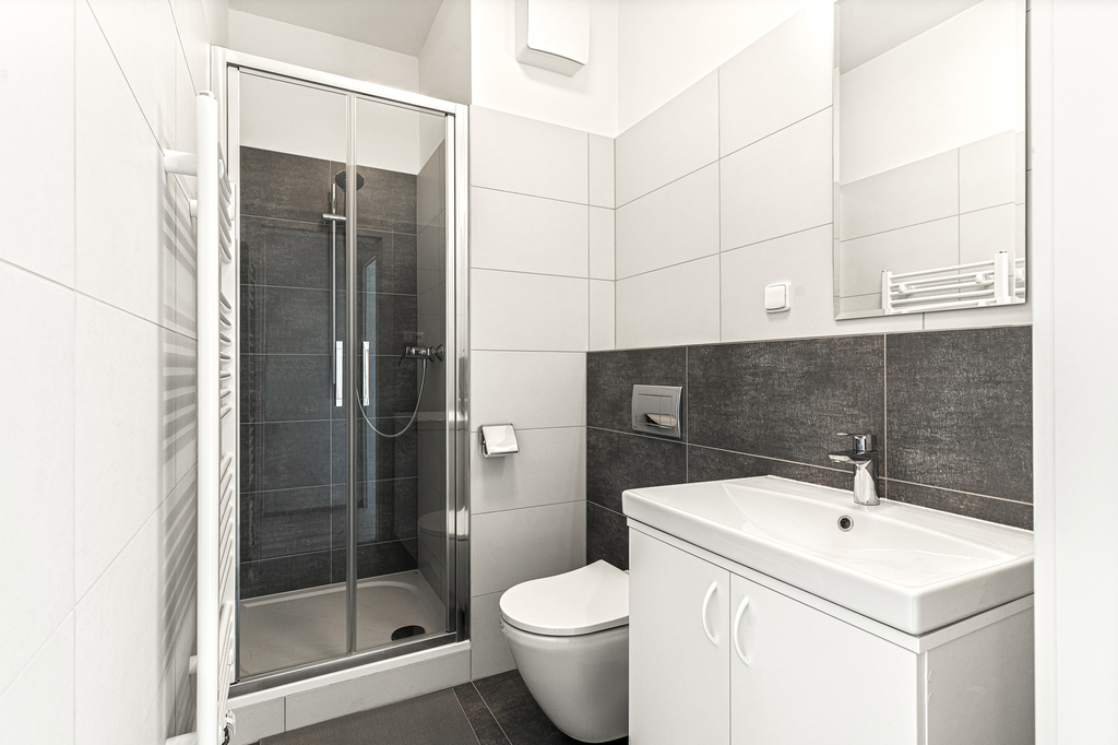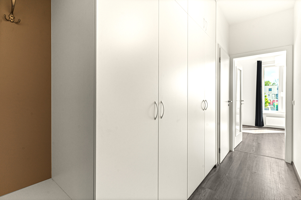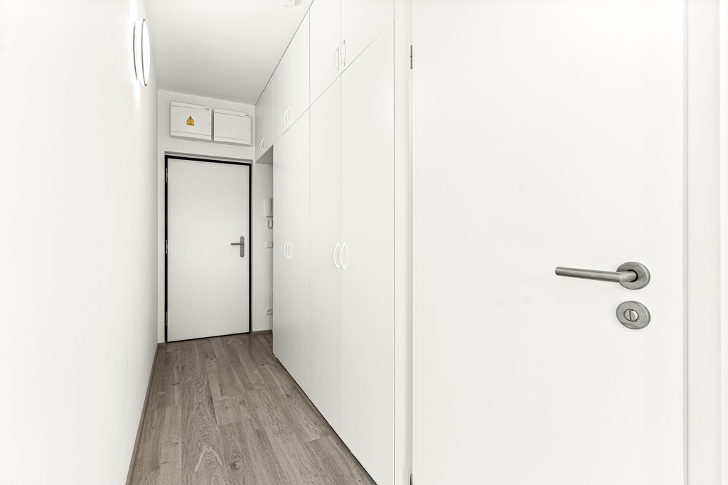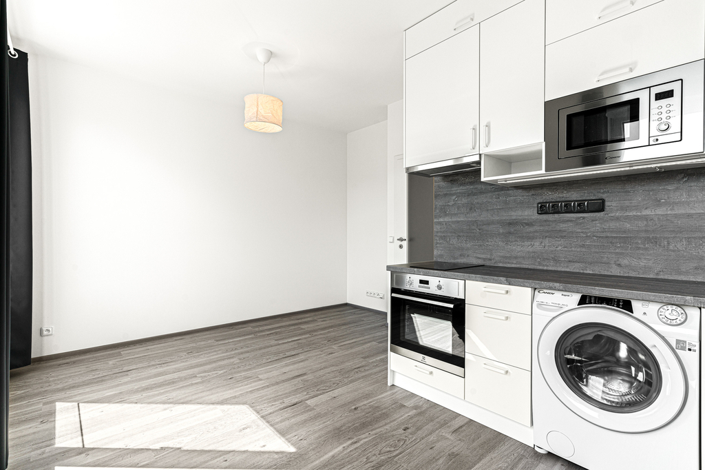 Nabízím k podnájmu byt 1+kk o výměře 26,5 m² v novostavbě. Skládá se z předsíně, která je vybavena úložnými skříněmi na míru, z moderní koupelny se sprchovým koutem a z obývacího pokoje s plně vybavenou kuchyňskou linkou. V kuchyni na vás čeká varná indukční deska, vestavěná trouba, vestavěná mikrovlnná trouba, kombinovaná pračka se sušičkou a volně stojící lednice s mrazákem. Okna jsou vybavena elektrickými stahovacími roletami. K bytu také náleží prostorná sklepní kóje o výměře 4 m² a můžete využívat společnou kočárkárnu. V domě je možnost napojení se na optický kabel, takže o rychlost internetu se bát určitě nemusíte.