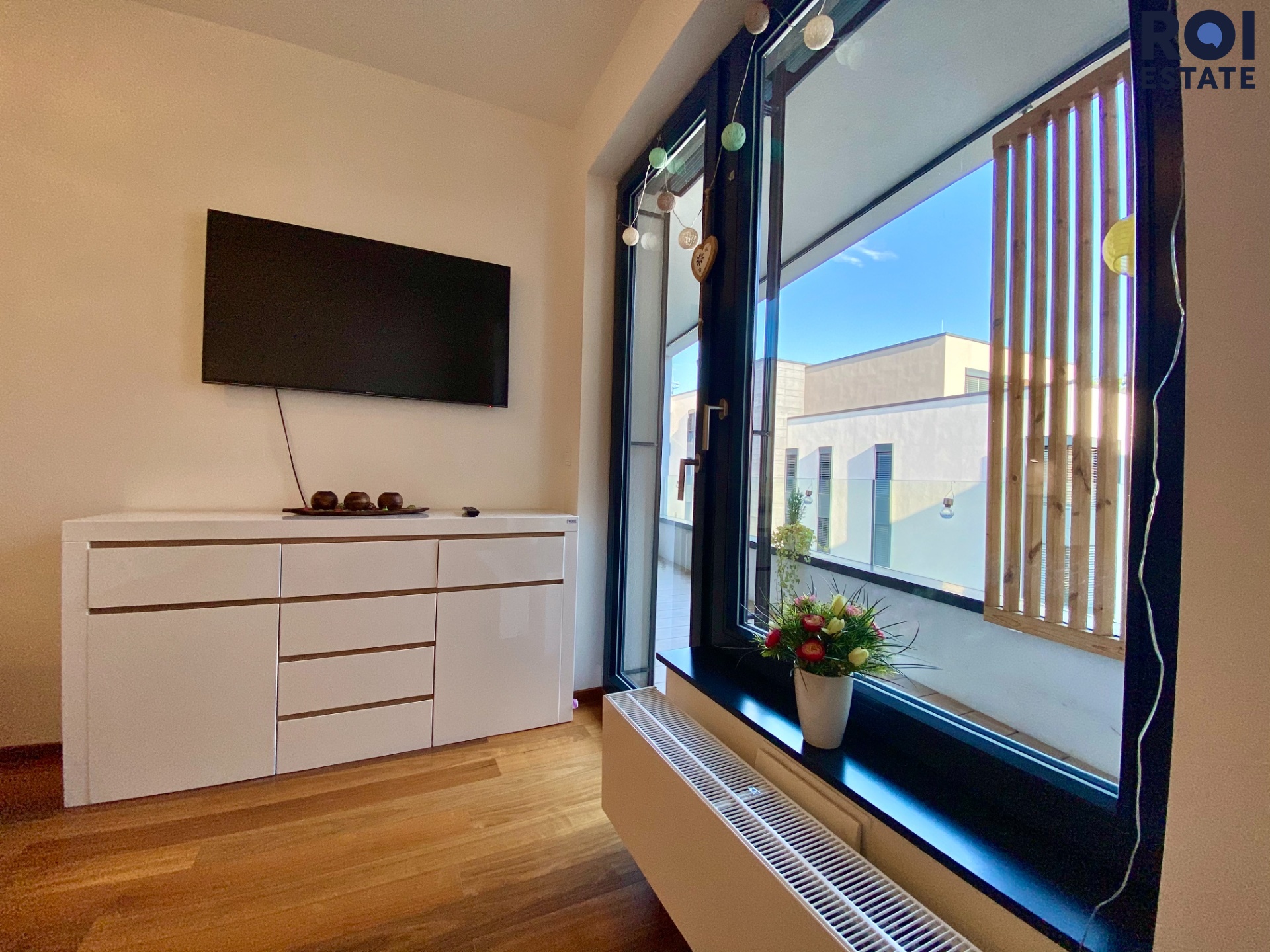 Interiér bytu byl navržen s důrazem na detail, funkčnost a moderní design. Součástí bytu je stylová koupelna, samostatná technická místnost s pračkou a sušičkou, plně vybavená kuchyňská linka a prostorný obývací pokoj s televizí. Komfortní ložnice nabízí dostatek úložného prostoru i vlastní televizi.