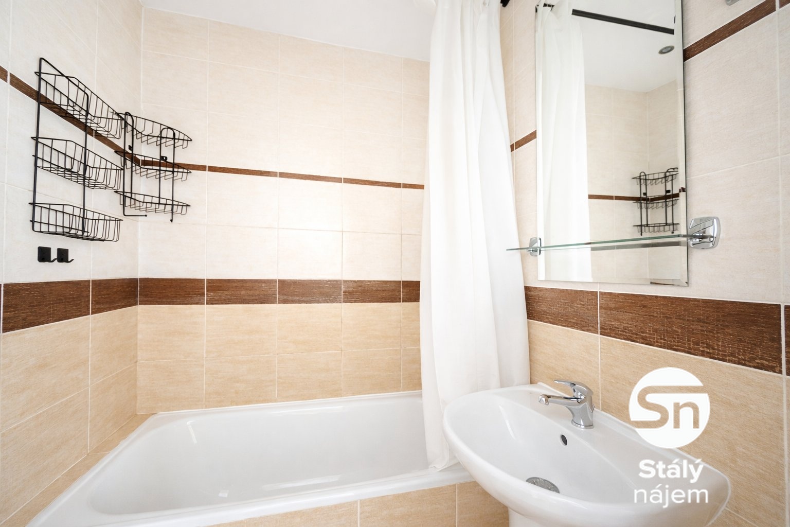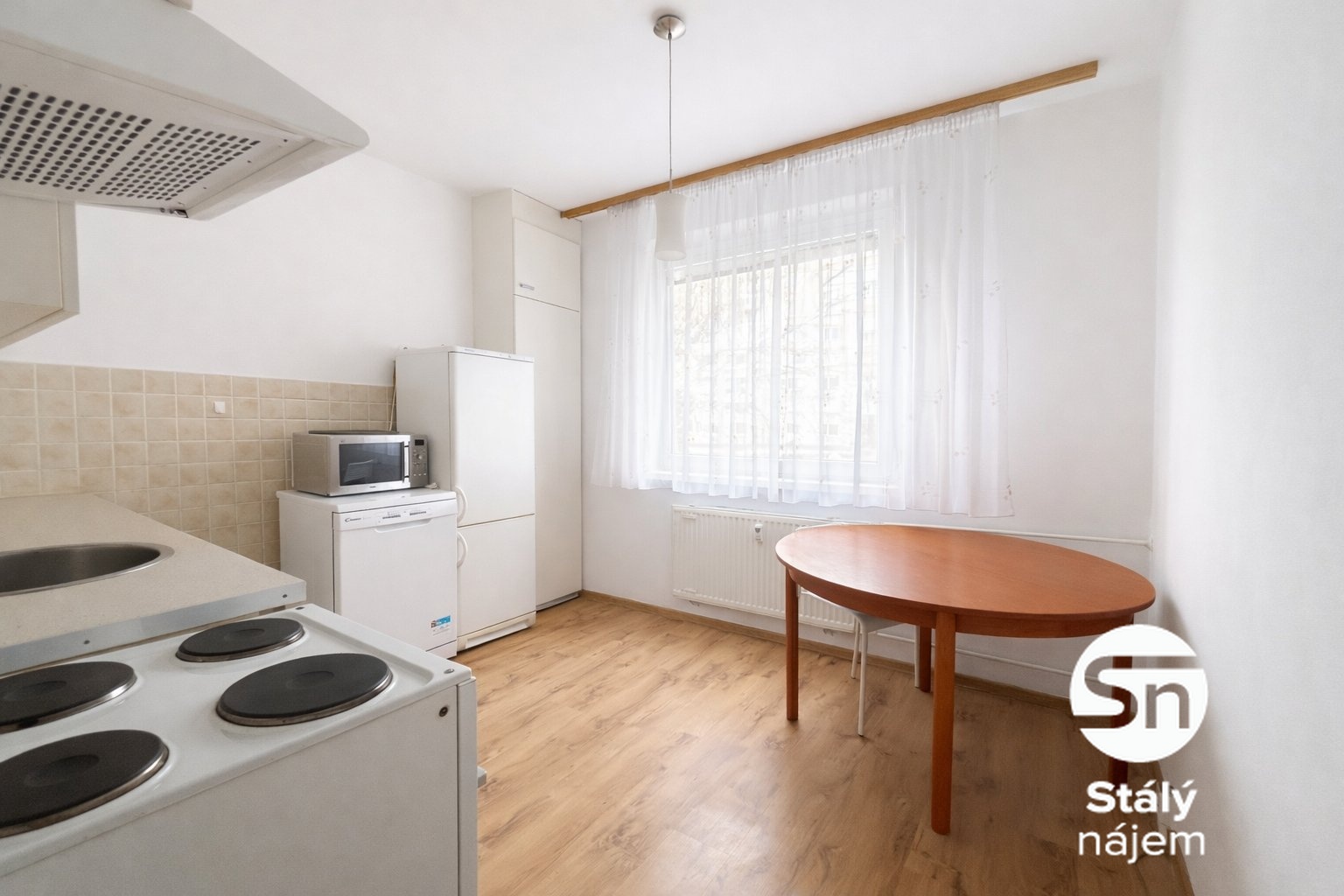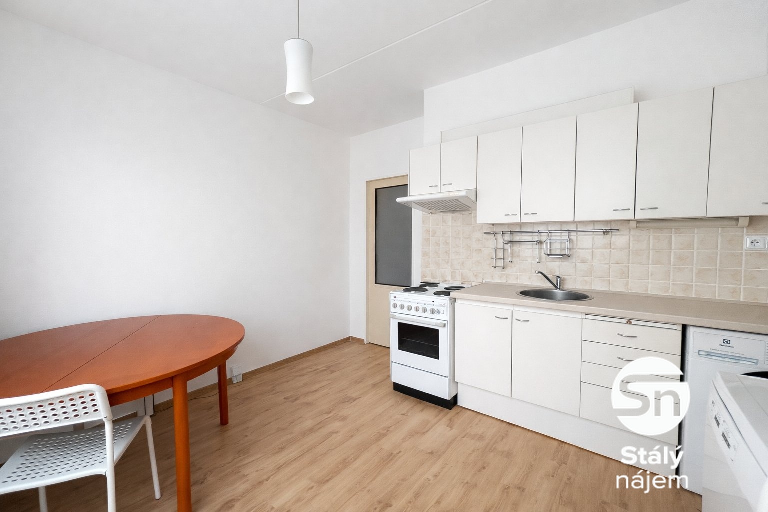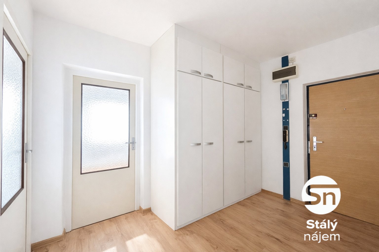 Z chodby bytu se dostanete do kuchyně, která disponuje kuchyňskou linkou s lednicí, sporákem, troubou, myčkou a pračkou. Dále se z chodby dostanete do obývacího pokoje, který je vybaven TV stěnou, a do dalších dvou samostatných pokojů. Z chodby je také vstup do koupelny s vanou a na samostatné WC.