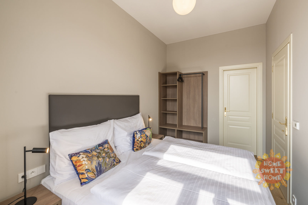 Byt sestává z obývacího pokoje s plně vybavenou kuchyňskou linkou, ložnice a koupelna se sprchovým koutem a toaletou. Součástí domu je recepce 24/7 a prádelna. V ceně poplatků je zahrnuta energie, vysokorychlostní Wi-Fi, 68 televizních kanálů, svoz odpadu, úklid společných prostor, recepce. Možnost pronájmu bytu i se službami za příplatek (pravidelný úklid, výměna ložního prádla, koupelnové kosmetické doplňky v BIO kvalitě).