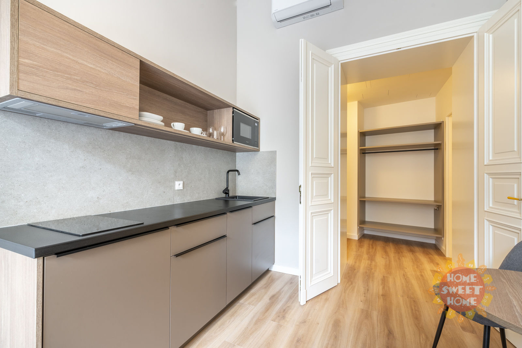Moderní zařízený byt 1+kk po kompletní rekonstrukci o celkové výměře 24m2 se nachází ve čtvrtém patře cihlového domu s výtahem v nově zrekonstruovaném domě v ulici Krakovská, Nové Město. Bydlení se nachází ve velice vyhledávané lokalitě a to cca 100 metrů od Václavského náměstí. Byt sestává ze vstupní chodby s úložným prostorem (šatní skříň), jedné místnosti s manželskou postelí, plně vybavené kuchyňské linky a koupelny se sprchovým koutem a toaletou. Součástí domu je recepce 24/7. V ceně poplatků je zahrnuta energie, vysokorychlostní Wi-Fi, 68 televizních kanálů, svoz odpadu, úklid společných prostor, recepce. Byt je také vybaven klimatizační jednotkou. Možnost pravidelného úklidu a výměny ložního prádla za poplatek.