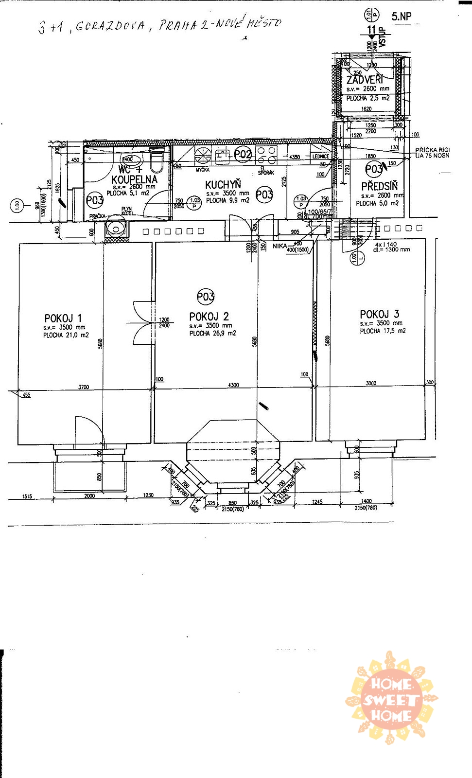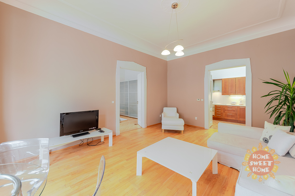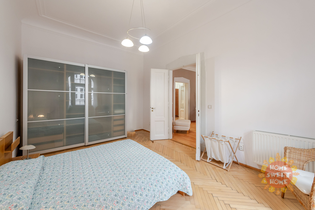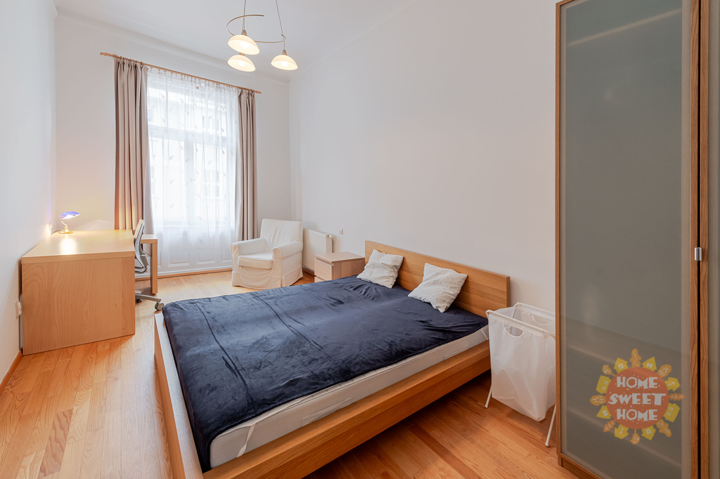 Nabízíme k pronájmu krásný kompletně zařízený byt 3+1 (90m2), který se nachází ve čtvrtém patře secesního domu s výtahem na Praze 2 - Nové Město, Gorazdova ulice. Tento velmi útulný byt sestává ze vstupní chodby, prostorného obývacího pokoje, dvou ložnic (jedna ložnice se vstupem na balkón o rozloze 2m2), kompletně vybavené kuchyňské linky včetně nádobí - lednice, pračka, myčka, digestoř, sklokeramická varná deska. V koupelně je sprchový kout, toaleta a pračka. Bezpečnostní vchodové dvěře a domovní video telefon. Topení etážové plynové (vlastní plynový kotel) a podlahové vytápění v obývacím pokoji, kuchyni, koupelně a předsíni. V blízkosti se nachází Tančící dům. Výborná dopravní dostupnost. Nedaleko domu stanice metra "B" Karlovo náměstí a také stanice tramvaje a autobusu.