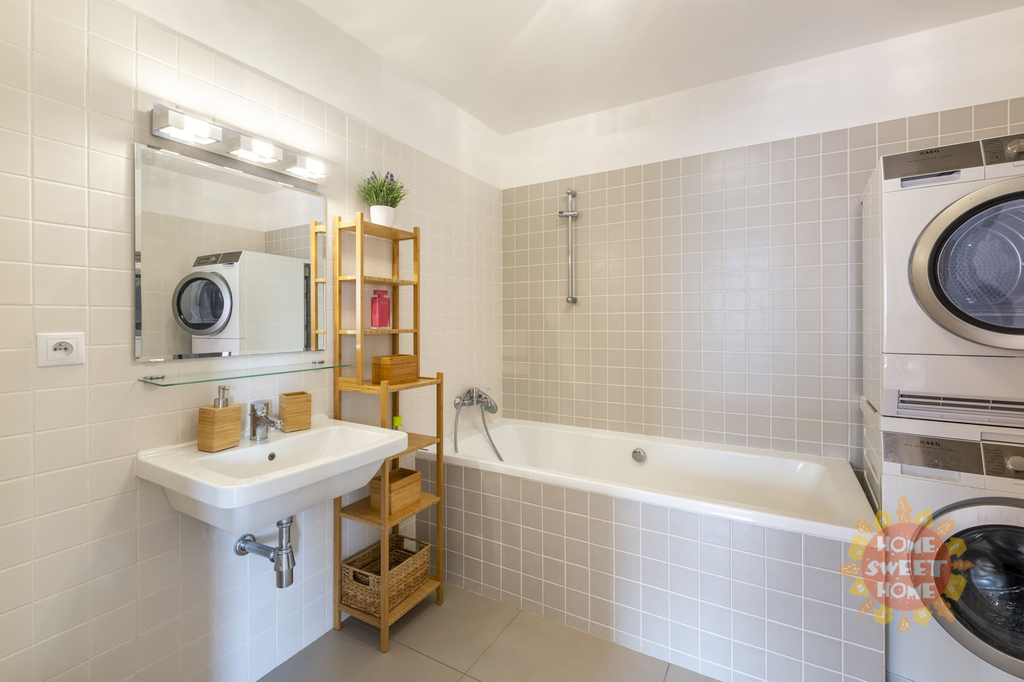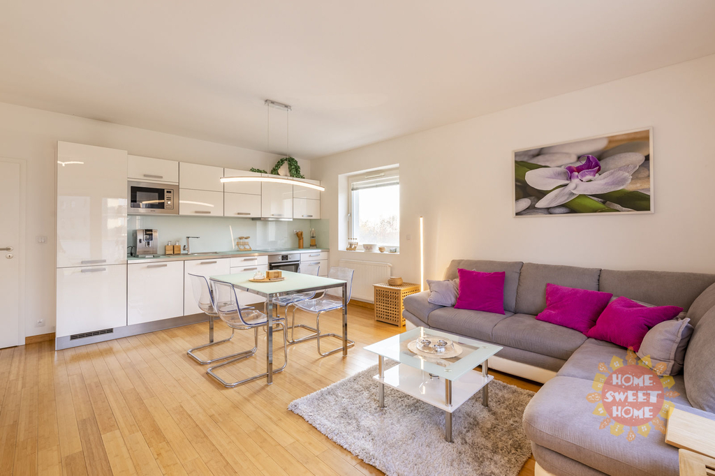 Díky orientaci bytu na východ, jih a západ je byt prosluněný v průběhu celého dne. Samozřejmostí je bezproblémové připojení vysokorychlostního internetu. Byt je vybaven centrálním vytápěním, což zajišťuje příjemnou atmosféru po celý rok. Dlažba a podlaha z dřevobambusu dodávají interiéru moderní přírodní charakter. Podzemní garážové stání, sklep (3,30m2) a vybavení bytu je součástí kupní ceny.
