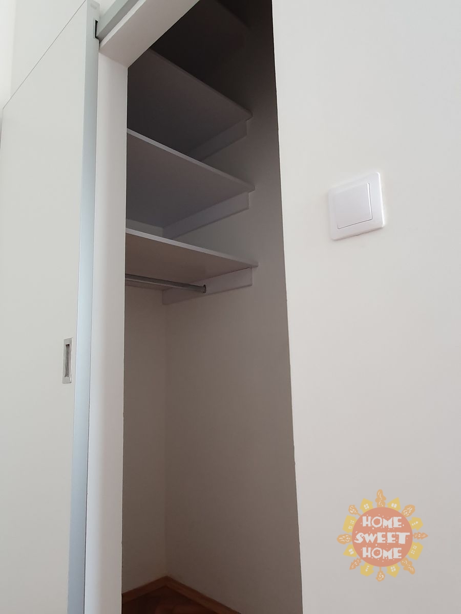 V bytě se nachází vstupní hala, obývací pokoj s kuchyňským koutem, 2 ložnice, šatna a koupelna sprchovým koutem a toaletou. Kuchyň je plně vybavena spotřebiči (lednice, myčka, mikrovlnná trouba, sklokeramická varná deska, digestoř). Na podlahách jsou parkety a dlažba. Topení a ohřev vody zajišťuje vlastní plynový kotel. V koupelně je příprava pro připojení pračky.