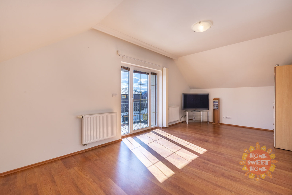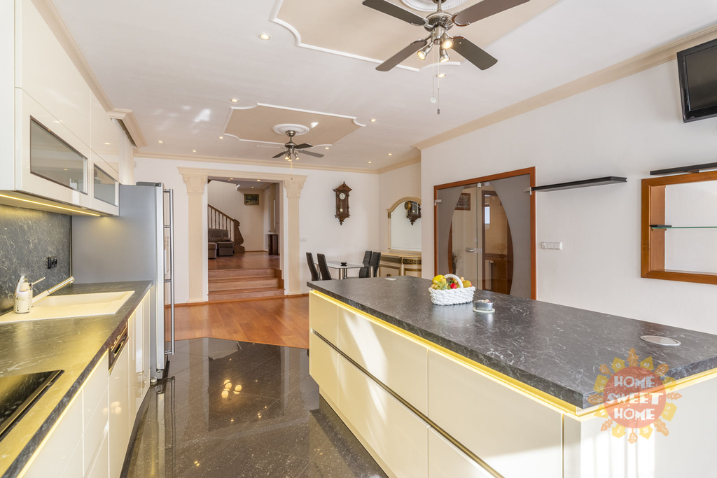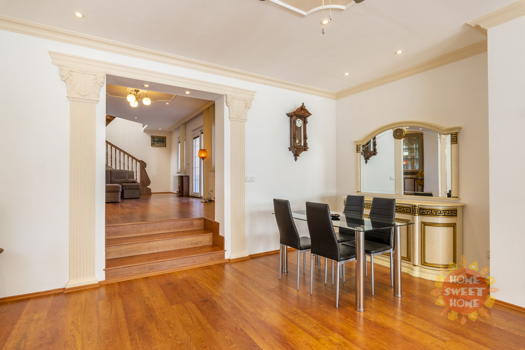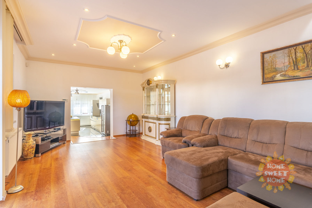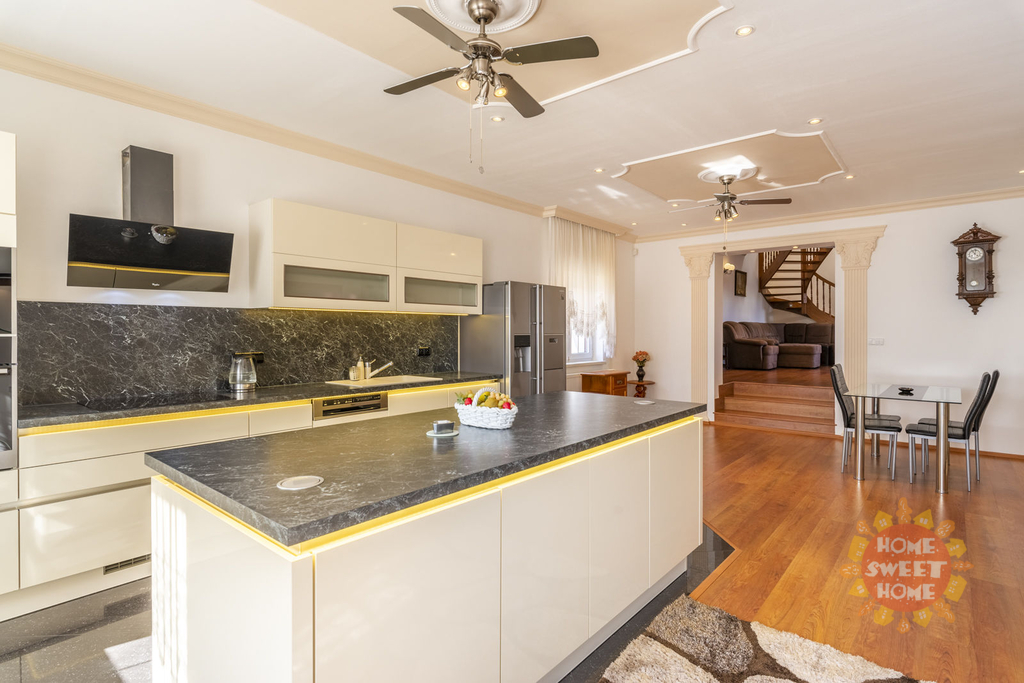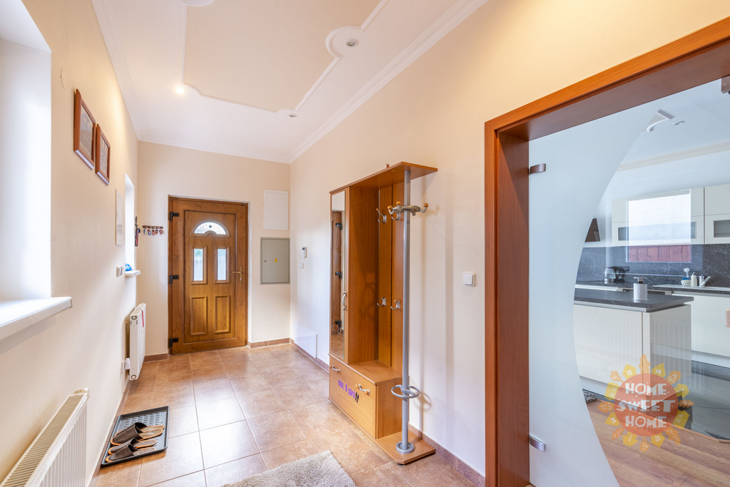 Dům sestává z moderní kompletně vybavené kuchyně (lednička s mrazničkou, trouba, mikrovlnka, sklokeramická varná deska, myčka) propojené s obývacím pokojem, 3 oddělených ložnic, koupelny s vanou, sprchovým koutem a toaletou, samostatného WC. Na podlahách je plovoucí podlaha a v koupelnách dlažba, která je vyhřívaná. Lze u domu zaparkovat 3 auta - 1 garážové stání, 2 stání ve dvoře. Objekt je střežen kamerami a je zde i zabezpečovací systém. Zahrada je automaticky zavlažována a je zde k dispozici i venkovní krb.