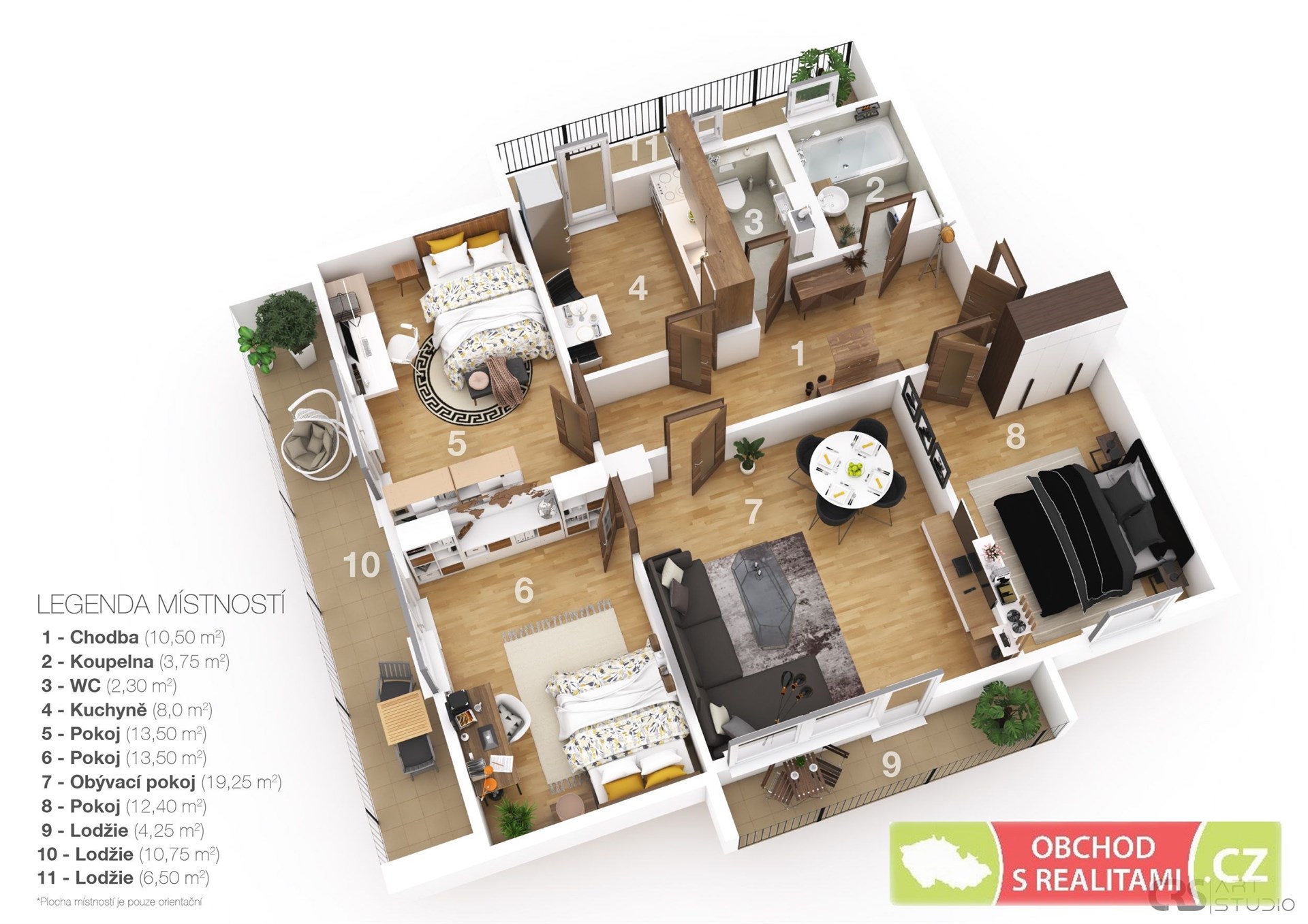 Praha 6 / Ruzyně, byt 4+1 s 3 x lodžií a 1 x sklepem