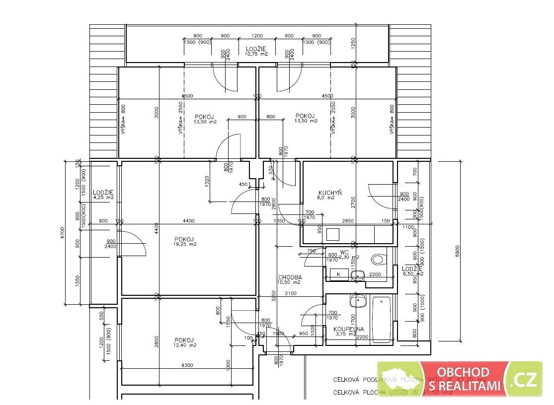 Dispoziční plánek bytu přikládáme, aktuální dispozice bytu je 4+1 s navzájem neprůchozími místnostmi, výměra bytu je 86,3 m2 + součet výměr lodžií 21,5 m2 + zděná sklepní kóje v suterénu domu o výměře 2,7 m2. Nad celou délkou bytu je půdní prostor, který je určený k výlučnému užívání právě pro tento byt (foto půdního prostoru též přikládáme)!
