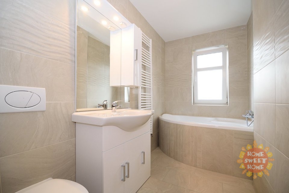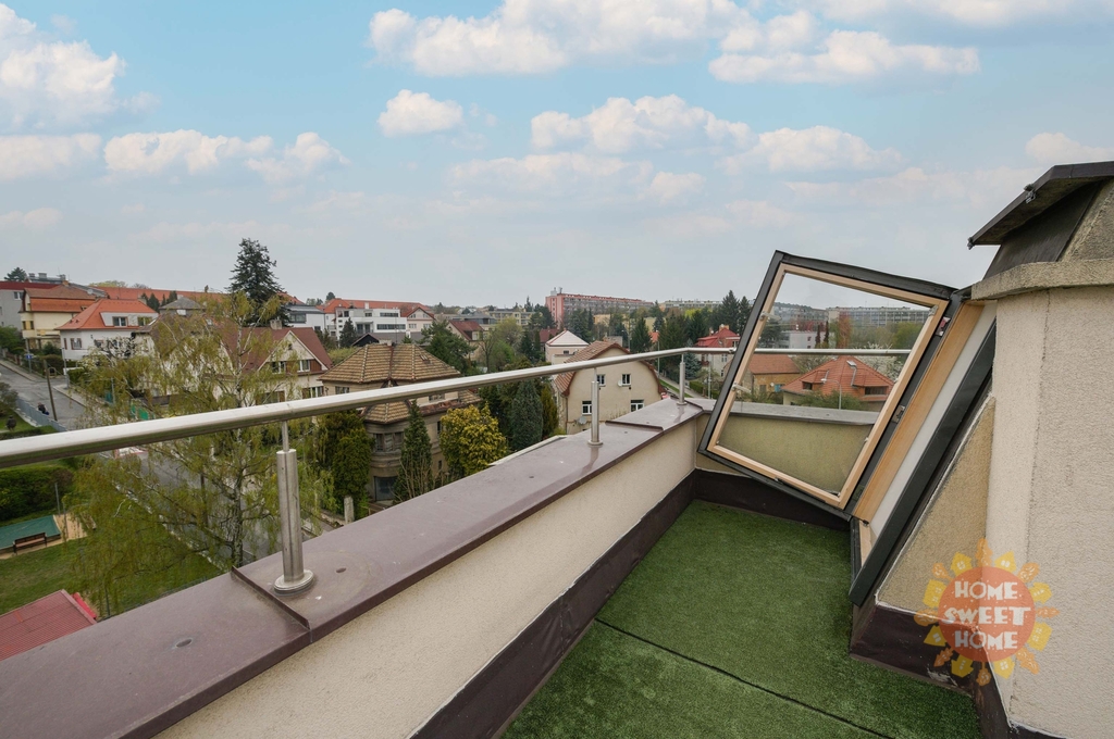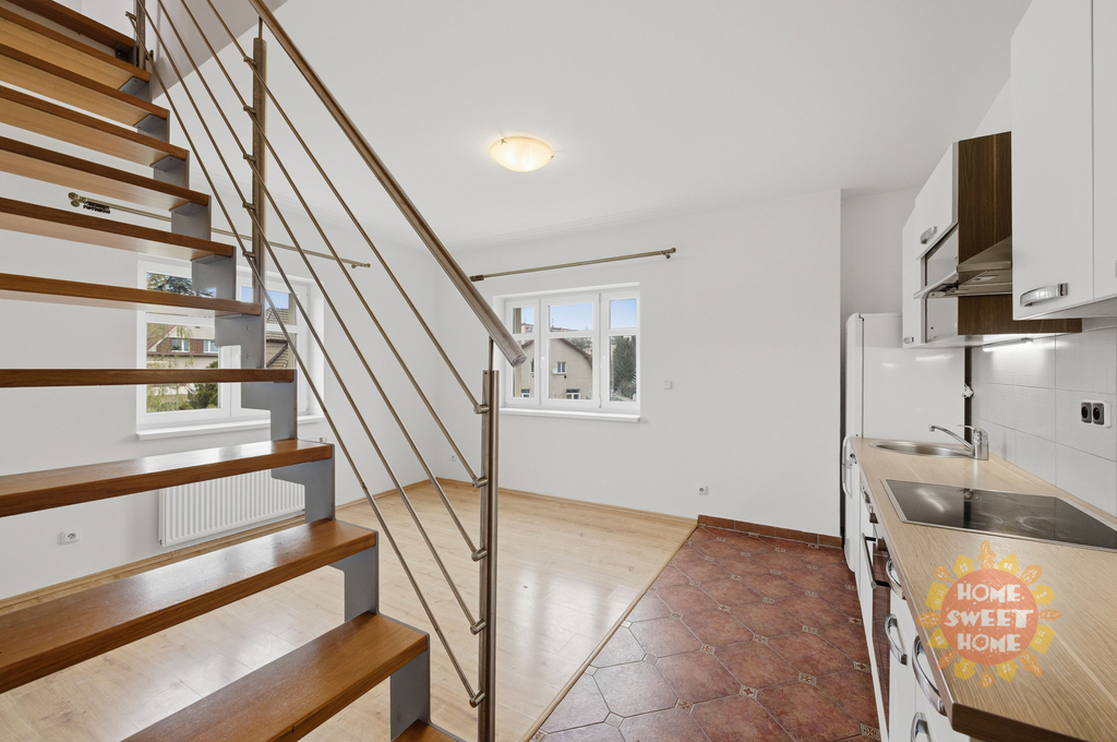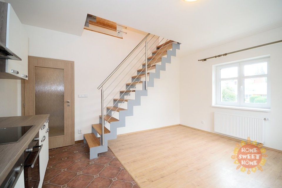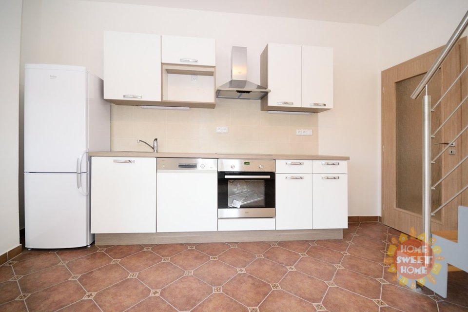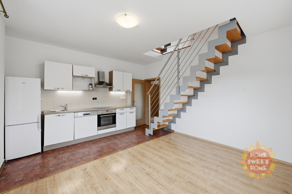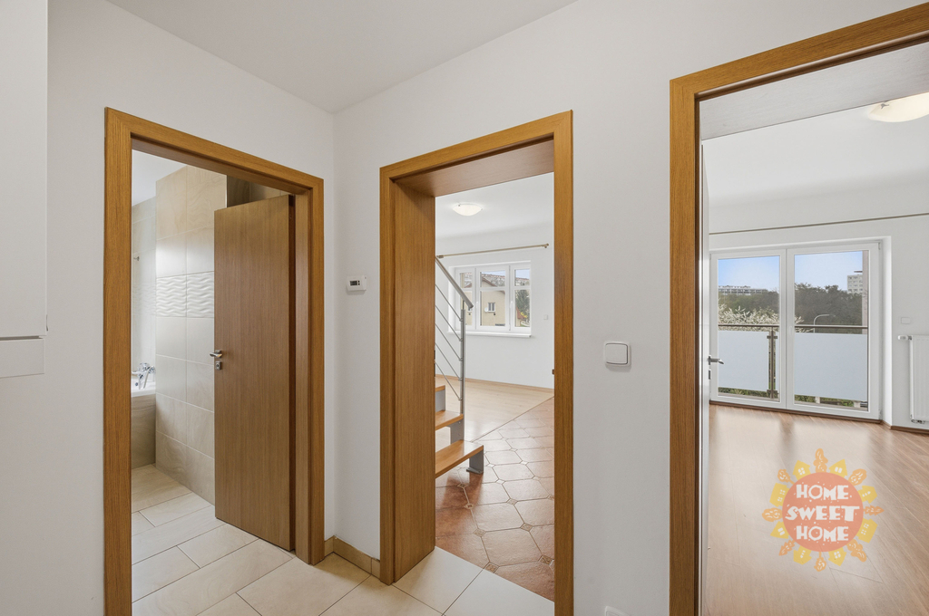 Nabízíme k pronájmu světlý, nezařízený mezonetový byt 3+kk o celkové ploše 68 m² s balkonem a prostornou terasou o velikosti 30 m², situovaný v rezidenční lokalitě Praha 8 – Kobylisy, ulice Hovorčovická. Byt se nachází ve 3.nadzemním podlaží cihlového domu bez výtahu. Dům je zateplený. Byt byl kolaudovaný v roce 2018. V dolním patře se nachází vstupní chodba, pokoj s kuchyňskou linkou, ložnice s balkonem a koupelna. V horním patře je pokoj a schodiště do 5. patra kde je vstup na terasu s krásným výhledem do okolí. Byt je vybavený kuchyňskou linkou s vestavěnými spotřebiči (lednice s mrazákem, elektrický sporák se sklokeramickou deskou). V koupelně je k dispozici vana a toaleta. Vytápění je zajištěno centrálním plynovým topením.