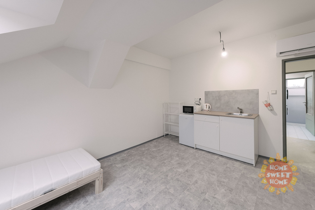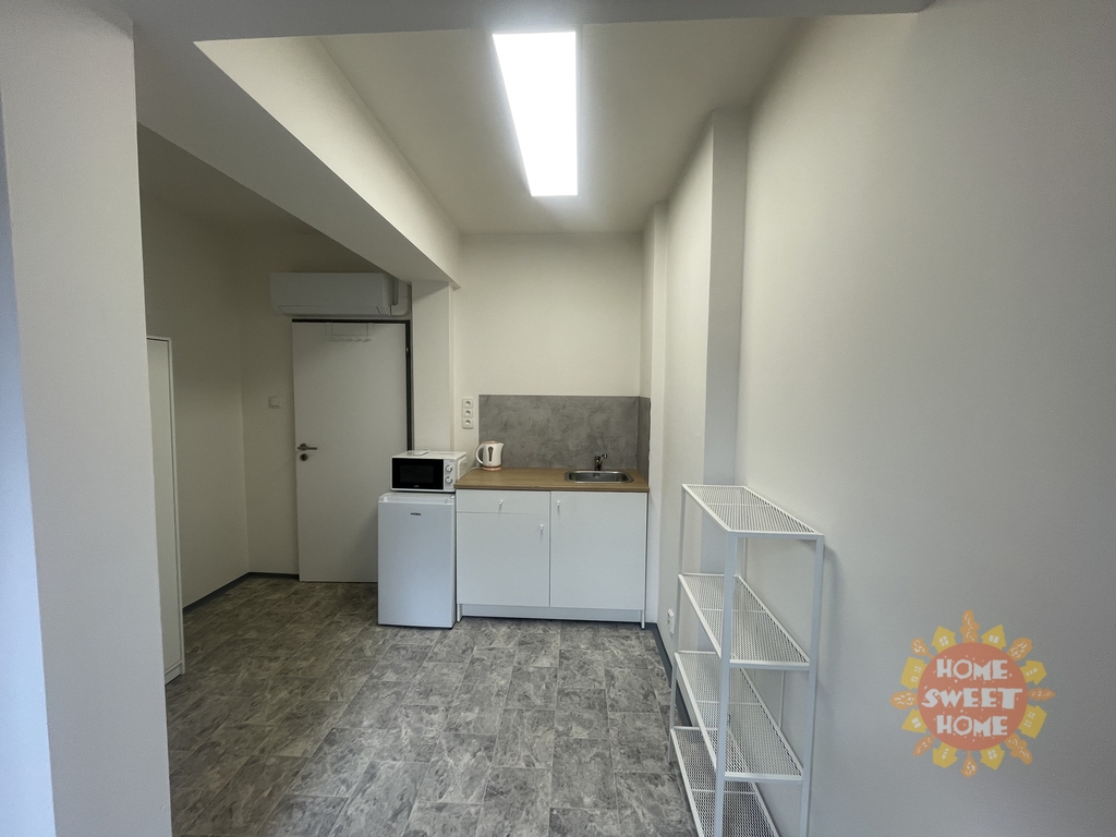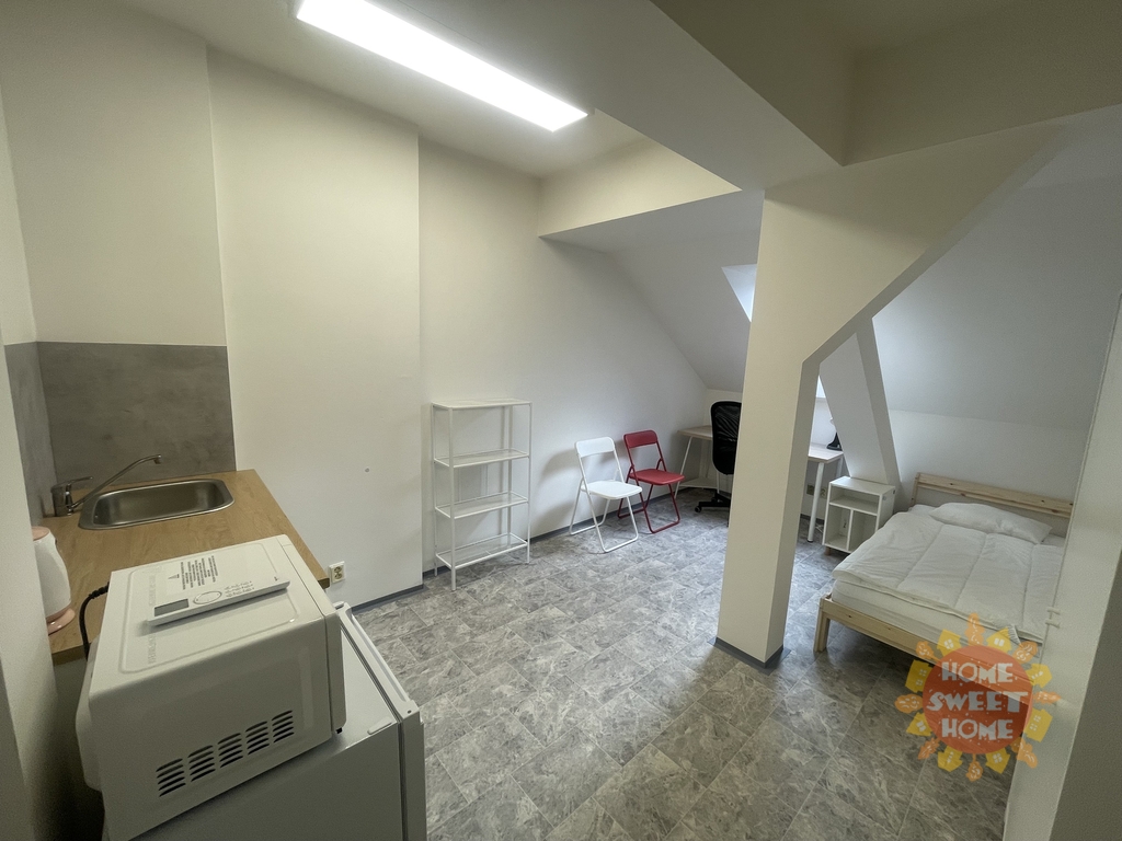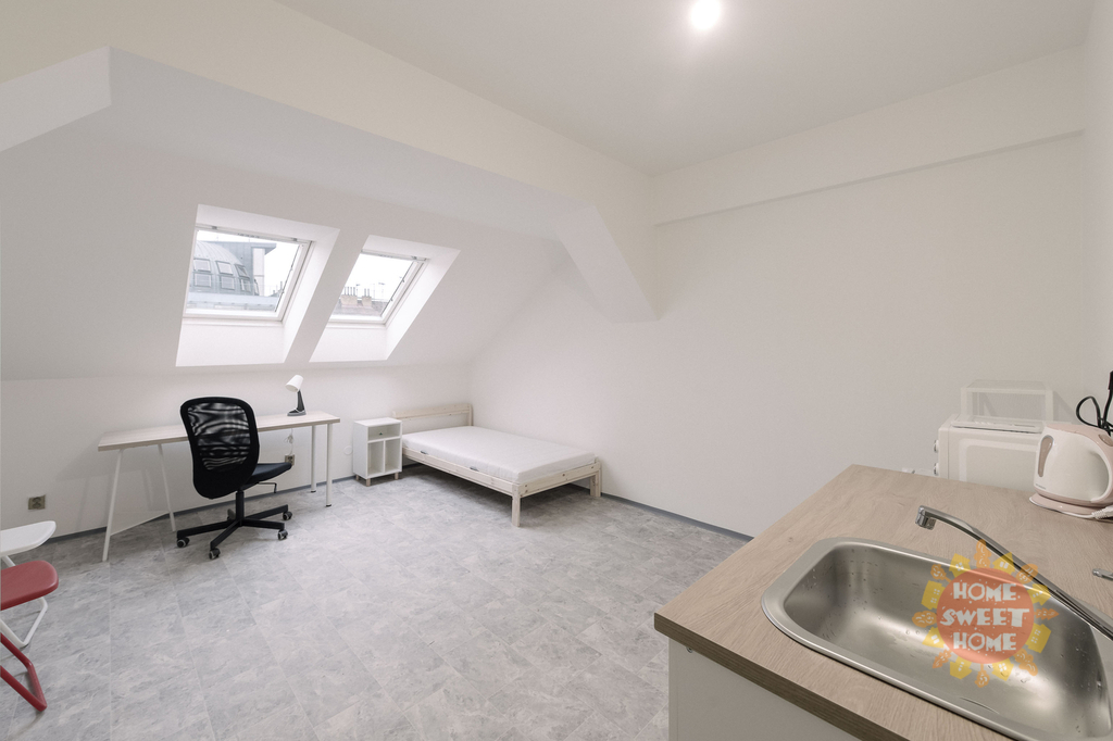 Nabízíme k pronájmu pokoj o rozloze 14 m² s vlastní kuchyňkou ve sdíleném apartmánu po kompletní rekonstrukci, který se nachází ve 4. patře cihlového domu v ulici Na Žertvách na Praze 8 - Palmovka. Tento pokoj je součástí devítipokojového bytu vybaveného vlastním menším kuchyňským koutem. Ve společných prostorech najdete kuchyni, místnost s pračkou a sušičkou, dvě koupelny se sprchovým koutem a tři oddělené toalety. Všechny pokoje jsou moderně vybaveny klimatizací, pracovním stolem, židlí, nočním stolkem, jednolůžkovou postelí včetně matrace a šatní skříní. V ceně poplatků je zahrnuto také vysokorychlostní internetové připojení a úklid společných prostor.