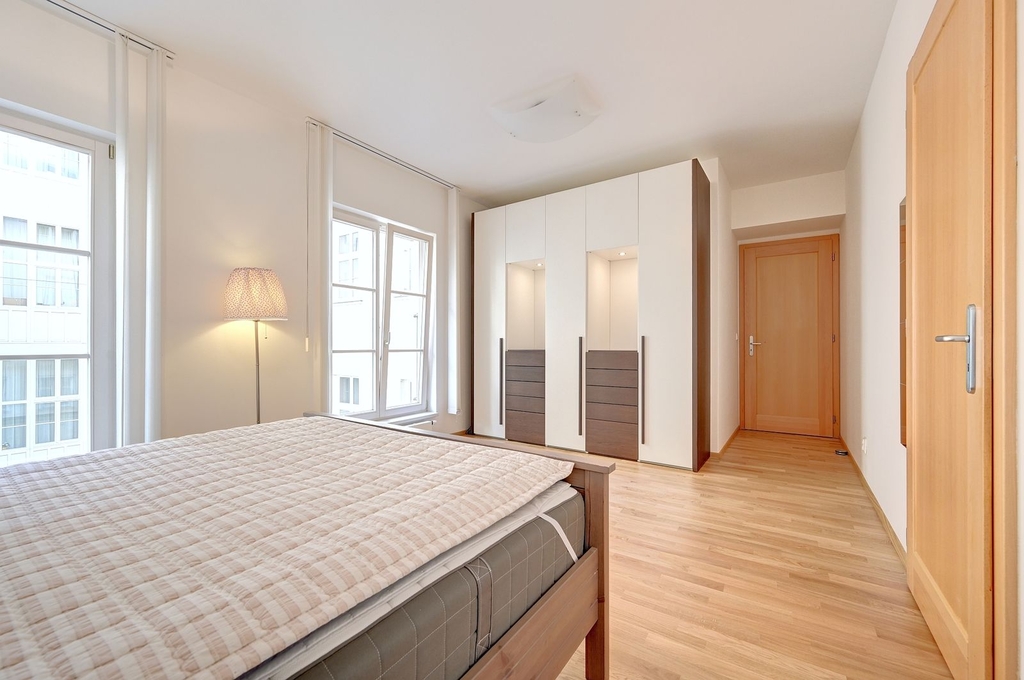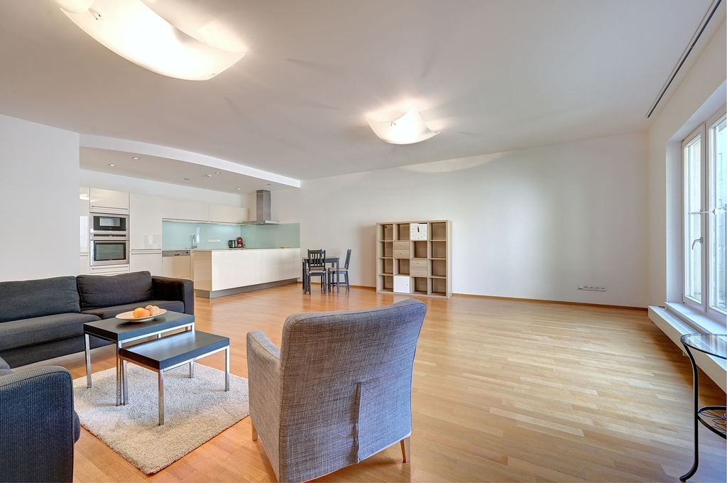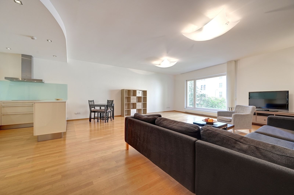 Dovolujeme si Vám nabídnout moderní částečně zařízený byt k pronájmu 4+kk v rezidenci Belwicz na Senovážném náměstí, Praha 1. Rezidence nabízí klidné bydlení v centru města.