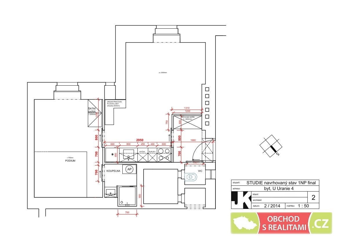 Plně zařízený byt s dispozicí 2+KK o velikosti 36 m2 se nachází na adrese U Uranie 1414/4, Praha 7 / Holešovice v 1. patře s okny orientovanými do klidného vnitrobloku (žádný hluk z ulice).