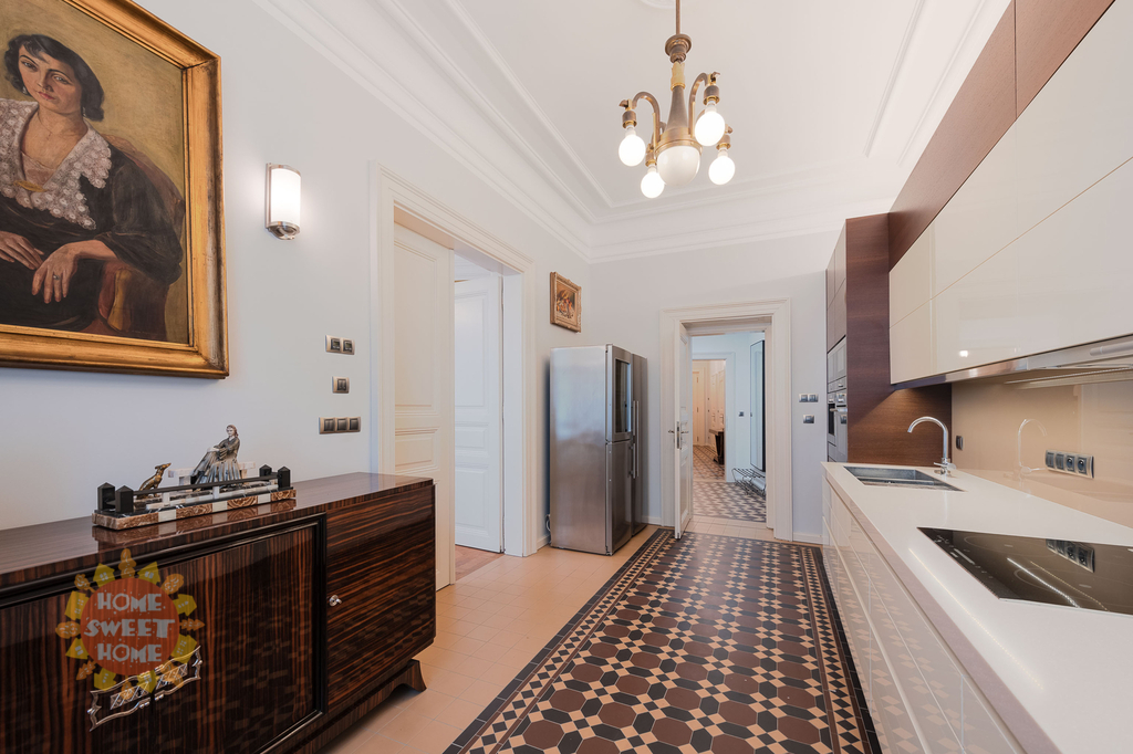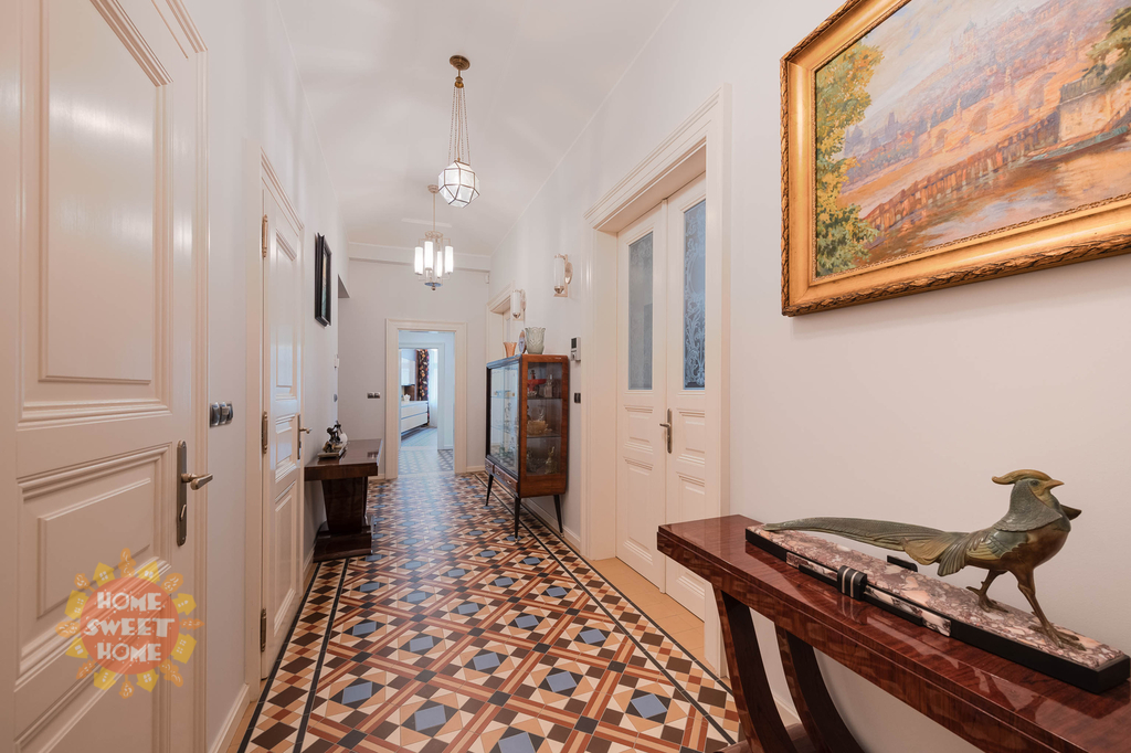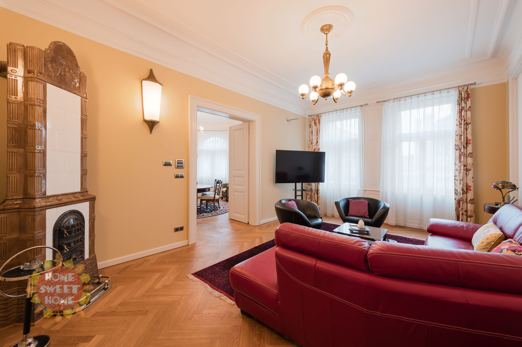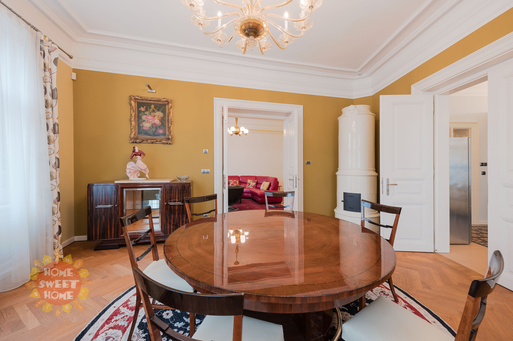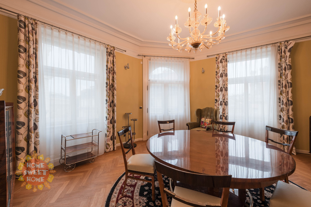 Nabízíme stylový luxusní zařízený byt k pronájmu, dispozičně řešený jako 5+1. Byt prošel důkladnou kompletní rekonstrukcí s důrazem na zachování původních architektonických detailů.