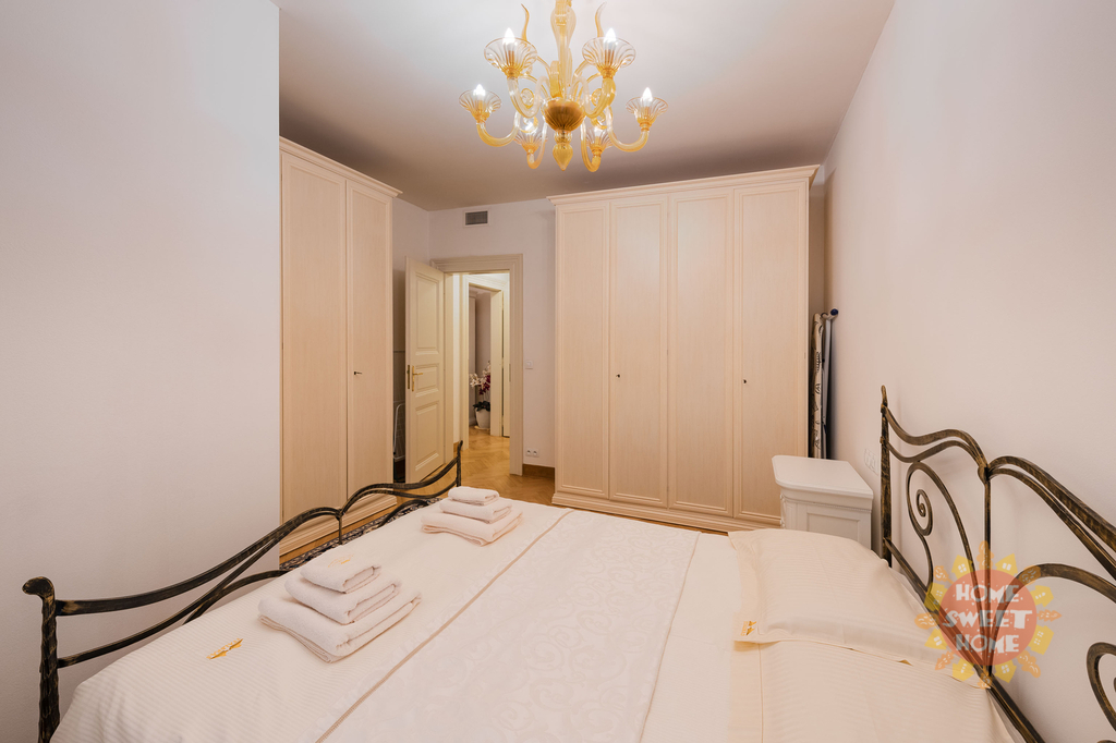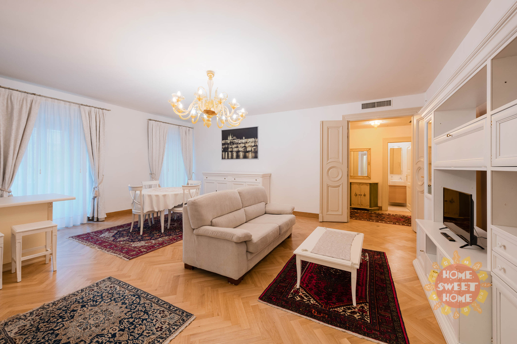 Nabízíme k pronájmu luxusní klimatizovaný apartmán 3+kk v prestižní zóně pražských Vinohrad, jen 50m od nádherného parku s kostelem sv. Ludmily. Apartmán o celkové rozloze 96m2 je koncipován tak, aby uspokojil nejnáročnější z náročných a nabízí prostorný obývací pokoj s plně vybaveným kuchyňským koutem (troubou, lednicí, mrazákem, myčkou nádobí, mikrovlnnou troubou, sklokeramickou deskou, digestoří), 2 ložnice a koupelnu s umyvadlem, vanou a toaletou. Možnost pronájmu garážové stání za příplatek 5000 CZK + DPH. Obyvatelům je k dispozici 24/7 recepce, vrátnice a kamerový systém a odpočinková zóna vyhřívaný venkovní bazén s vodní masáží a saunou a udržovaná krásná zahrada. Výborné spojení s centrem - metro trasa A, autobusová zastávka přímo před domem. Václavské náměstí je pouhých 5 minut chůze.