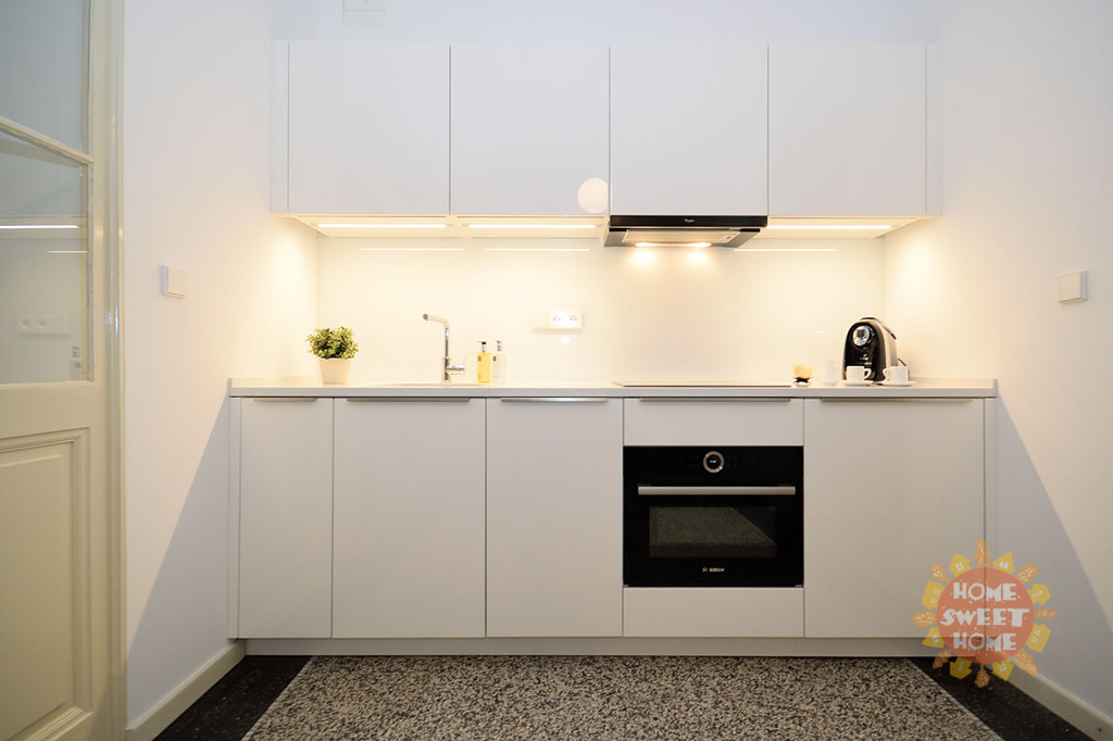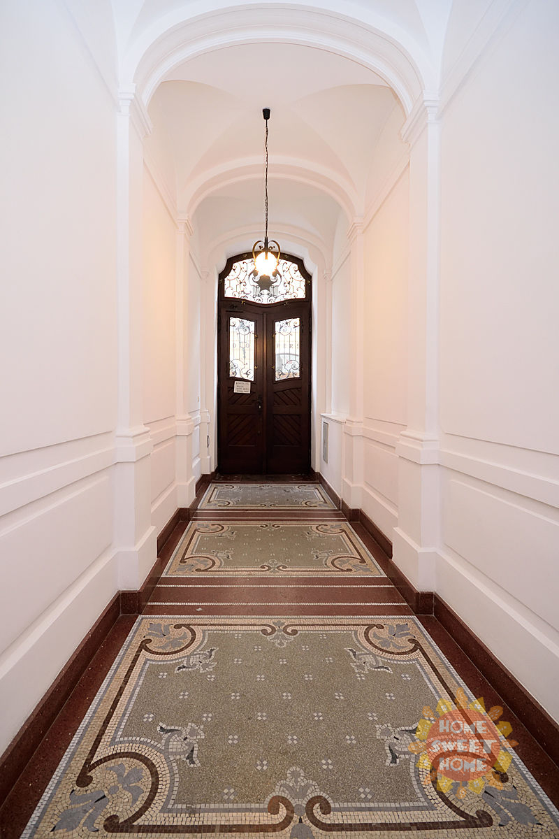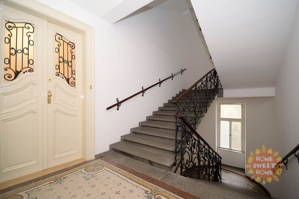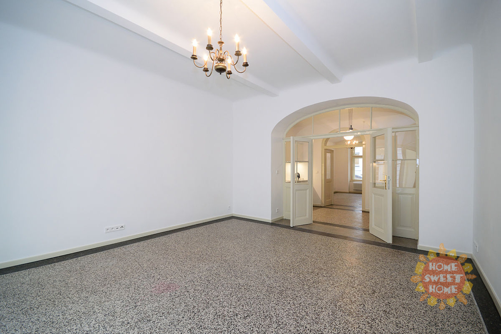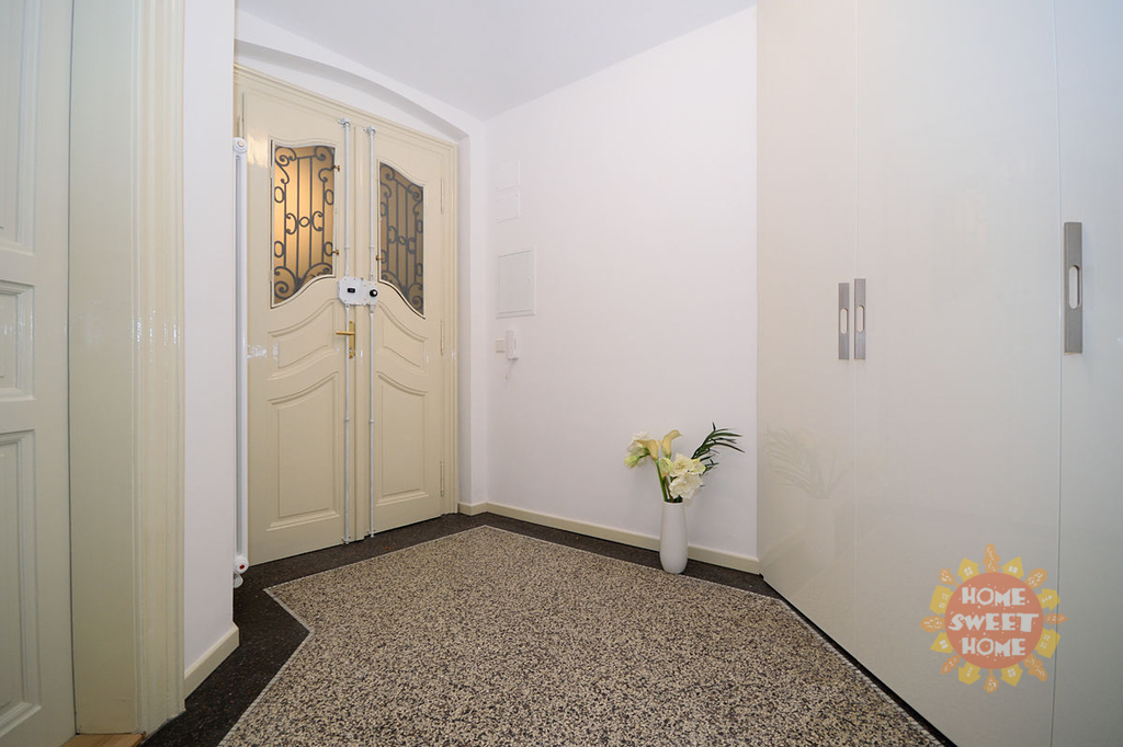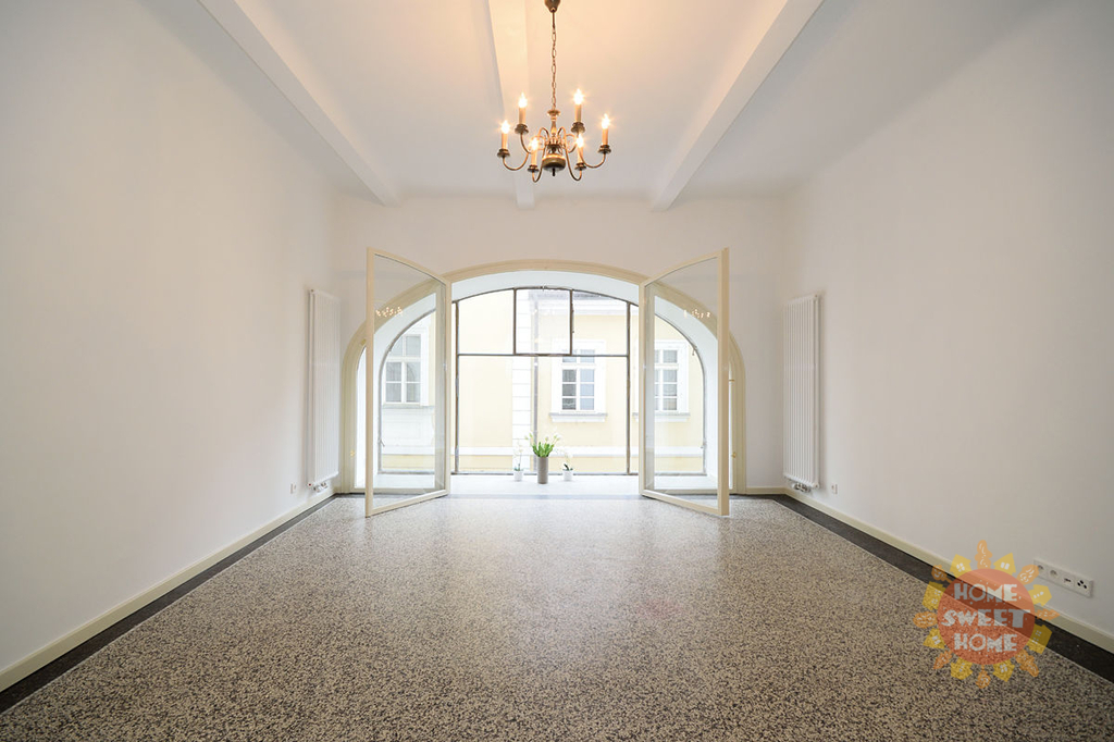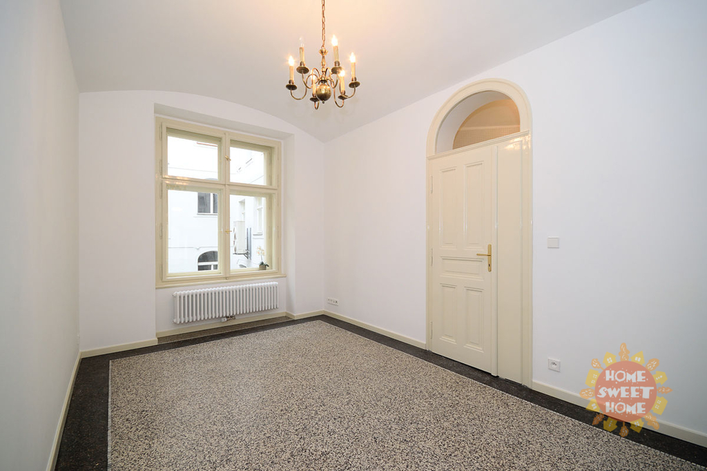 Světlý prostor v centru Prahy se skládá ze dvou samostatných místností ( větší místnost má zimní zahradu), haly s kuchyňskou linkou plně vybavenou (sklokeramická deska, elektrická trouba, myčka, lednice s mrazákem, digestoř), koupelna se sprchovým koutem a toaleta je samostatně, K dispozici je alarm, samostatné plynové topení a podlahy tvoří mramor.