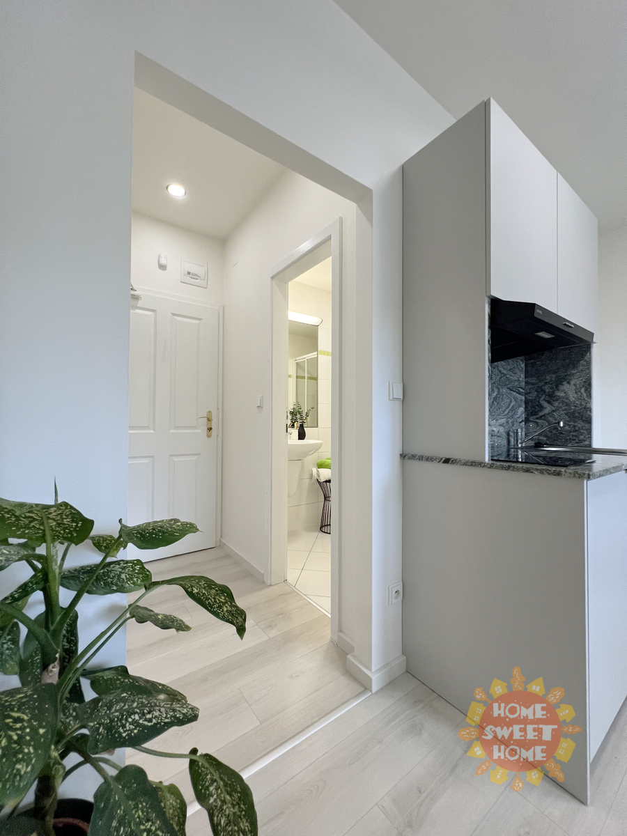 Apartmán byl navržen s důrazem na maximální využití prostoru a funkčnost. Součástí apartmánu je plně vybavená kuchyňská linka (lednice, varná deska, mikrovlnná trouba, digestoř), koupelna se sprchovým koutem a toaletou, lůžka s matracemi 90x200cm, dostatek úložného prostoru, pracovní deska. Vybavení bytu je velmi kvalitní a přispívá k příjemnému bydlení. Vysokorychlostní internet je samozřejmostí a je již zahrnut v ceně poplatků.