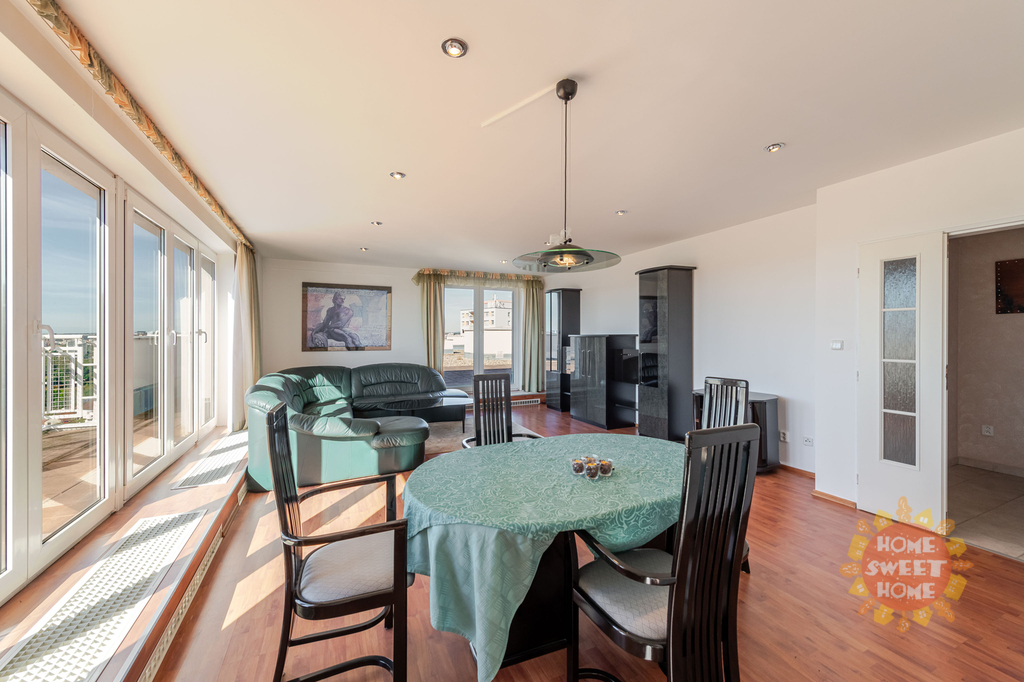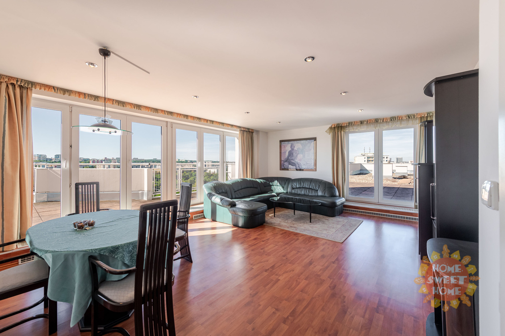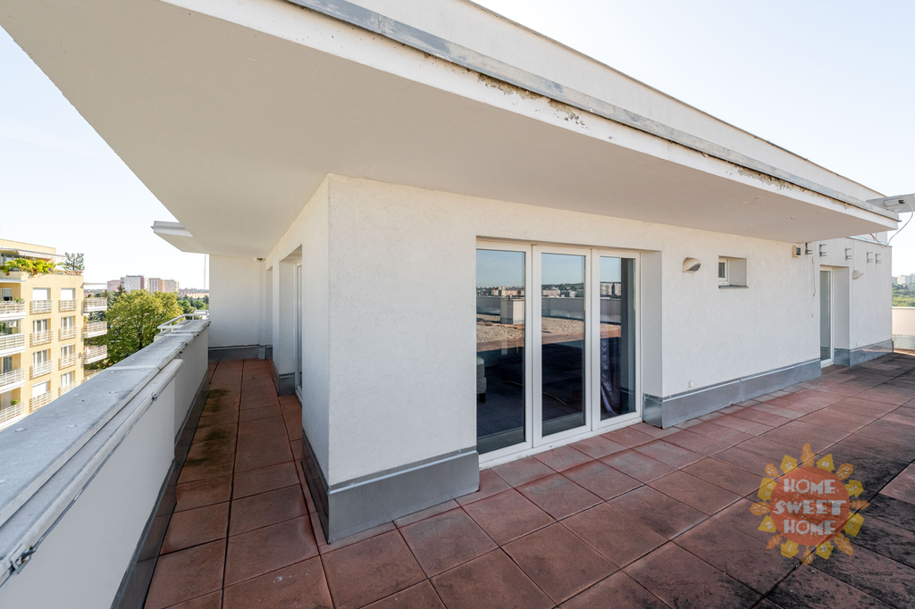 Nabízíme k pronájmu částečně vybavený byt 4+1 o rozloze 130 m² s velkorysou privátní terasou (celkově 507 m²) na střeše domu, který nabízí krásný výhled do okolí Záběhlic a dále. Byt se nachází v 6. nadzemním podlaží novostavby s výtahem v ulici Hyacintová. Bezpečnost bydlení zajišťuje denní ostraha, která vytváří bezpečnou a klidnou atmosféru pro rodiny.