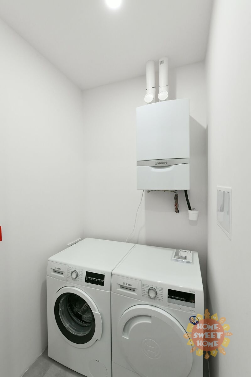 vstupní chodba s vestavěnými skříněmi, obývací pokoj s kuchyní a jídelním prostorem, 3 samostatné ložnice (hlavní ložnice s vlastní koupelnou), další koupelna se sprchovým koutem, technická místnost, komora, toaleta odděleně. Kuchyňský kout je plně vybaven moderními spotřebiči. Dostatek úložného prostoru – vestavěné skříně v každém pokoji. V bytě použity kvalitní materiály, dubové parkety, designová dlažba, plynový kotel, bezpečnostní dveře. K dispozici pračka a sušička. Jedno parkovací stání vzdálené 350m od budovy je nutno pronajmout s bytem, cena 6.500 + DPH