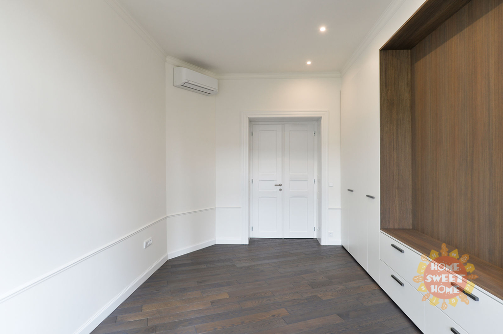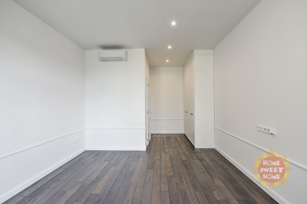 Dostatek úložného prostoru – 2 x šatna, sklep, vestavěné skříně, klimatizace. V bytě použity kvalitní materiály, dubové parkety, designová dlažba, plynový kotel, bezpečnostní dveře. K dispozici pračka/sušička.