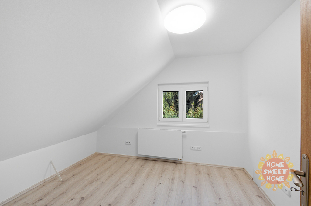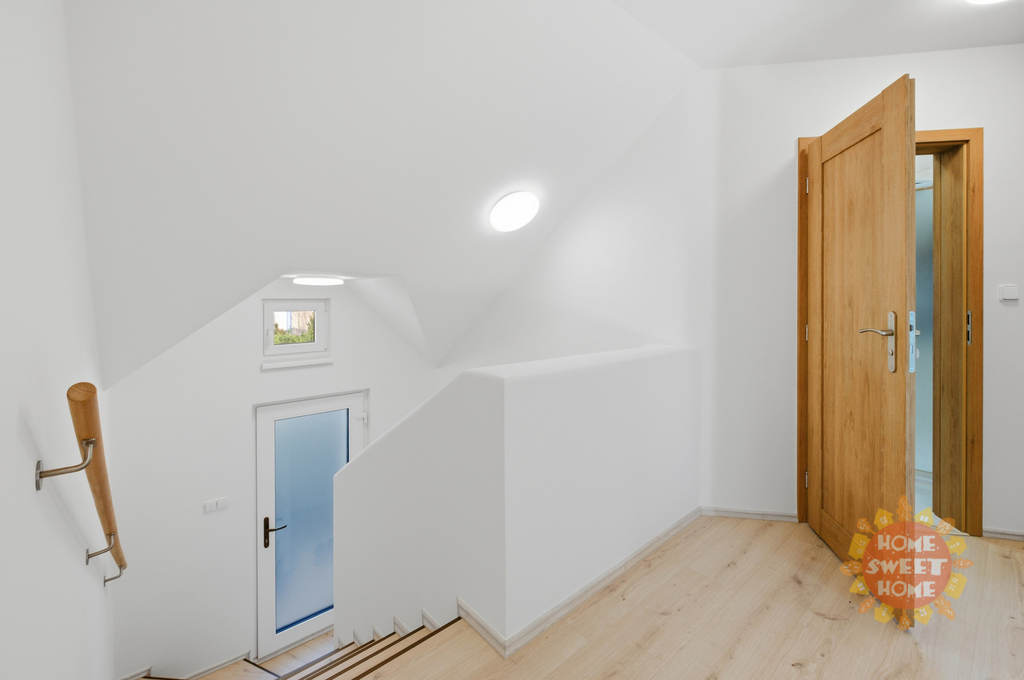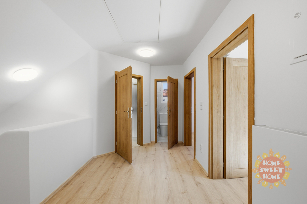 Byt se nachází ve 2. nadzemním podlaží zděného, zatepleného dvoupodlažního domu a má samostatný venkovní vstup, který zajišťuje dostatek soukromí. Nabízí se nezařízený. Podkrovní charakter s klenutými stropy vytváří příjemnou a útulnou atmosféru. Dispozice je prakticky řešena s ohledem na pohodlné rodinné bydlení.