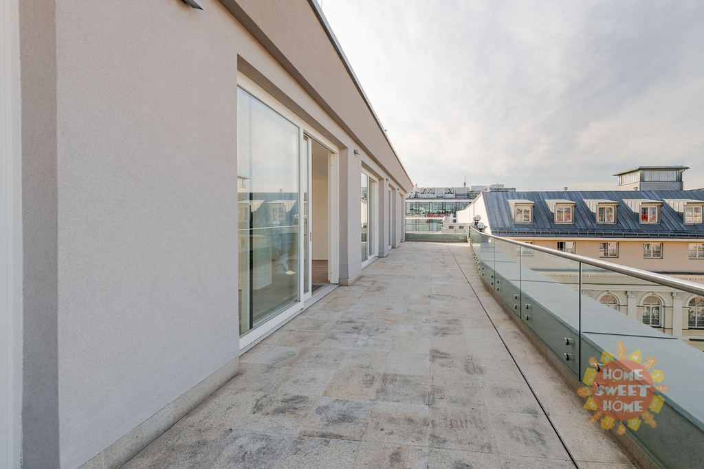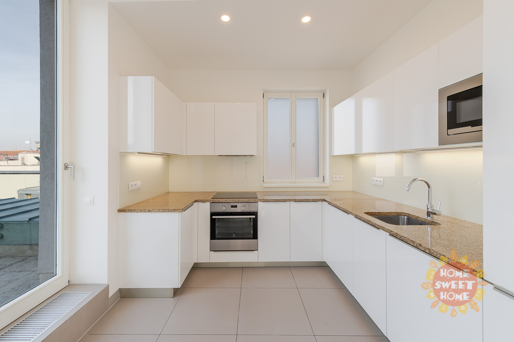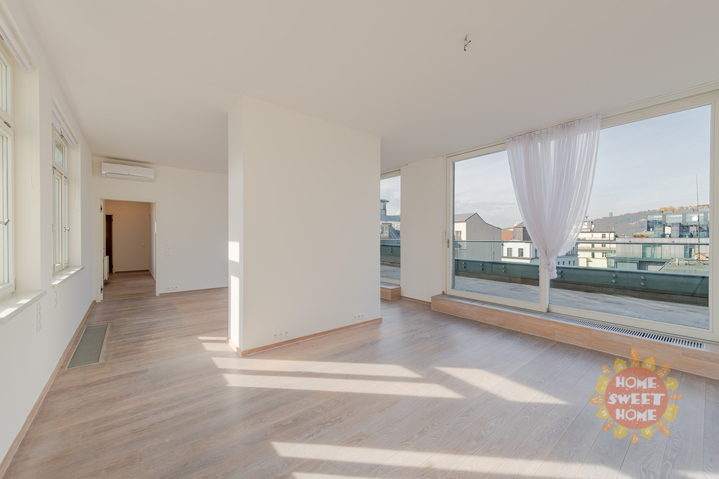 Praha, pronájem, nezařízený byt 3+1 (117 m2), terasa 56 m2, klimatizace, Nové Město, Jungmannova ul.