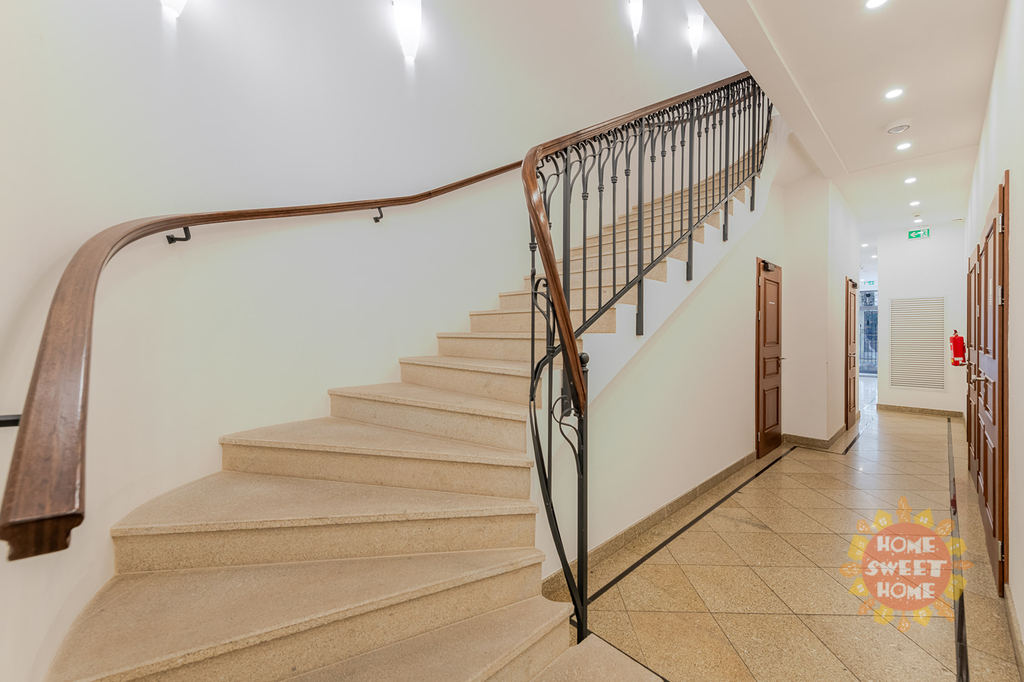 Byt je situována v 6. patře zrekonstruovaného domu s výtahem, který se nachází v samém srdci Prahy v ulici Jungmannova – Nové město.