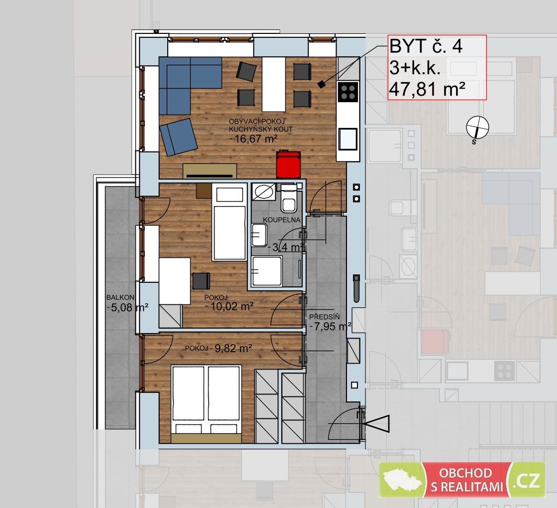 Dispozice bytu:3+kk