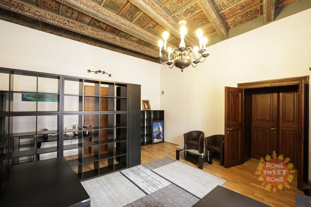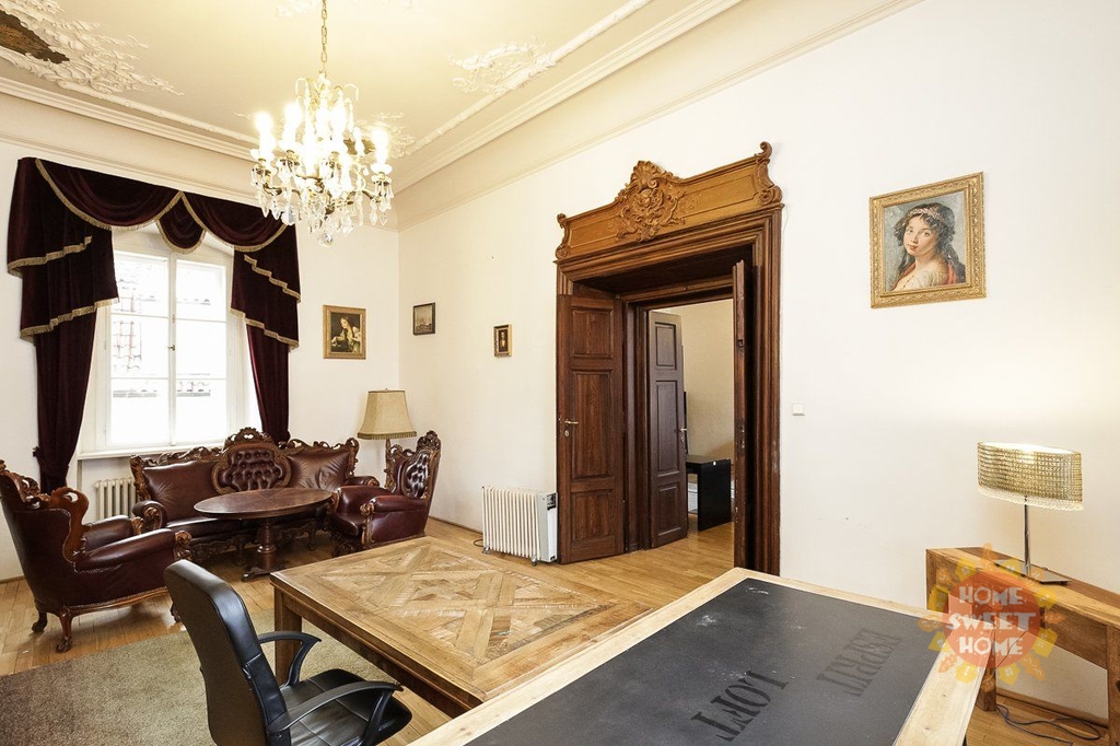 Krásné nezařízené (možno zařízené) reprezentativní prostory k pronájmu o celkové rozloze 71,5 m2 se nachází ve druhém patře v historickém domě U Zlatého melounu na Praze 1. Jde o 2 průchozí místnosti (velikost 36 + 35,5 m2). Možnost levného pronájmu starožitného nábytku (viz foto).