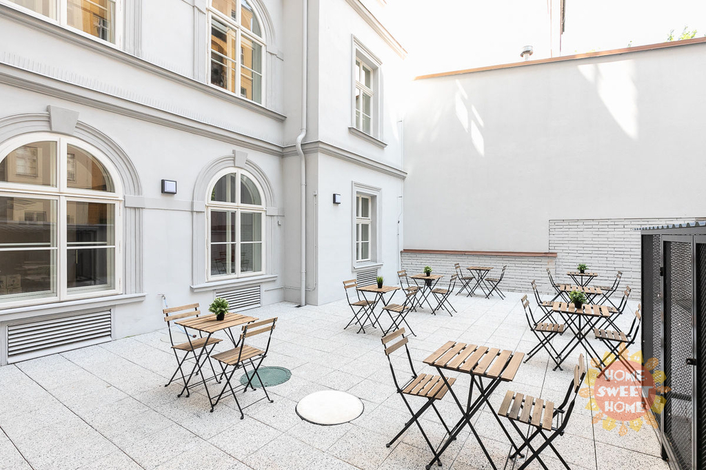 Krásný zařízený pokoj s manželskou postelí o celkové rozloze 15 m² se společnou zařízenou kuchyní s jídelním koutem, koupelnou se sprchovým koutem a toaletou se nachází v Residenci Kinských ve sníženém přízemí cihlového domu v ulici náměstí Kinských, Praha 5. Dům prošel kompletní rekonstrukcí roku 2019. Pokoj se nachází ve dvoupokojovém bytě s jednou koupelnou a extra toaletou. Byt i pokoj je kompletně zařízený. Společné prostory jsou vybaveny včetně žehličky, úklidových pomůcek a dalších potřeb pro běžný provoz. Samotný uzamykatelný pokoj je vybavený manželskou postelí, pracovním stolem, křeslem, šatní skříní, přikrývkou a polštářem. Internet a úklid společných prostor (1× týdně) jsou již zahrnuty v ceně nájmu. Nájemníkům je dále k dispozici fitness, prádelna (na mince) a společná terasa.