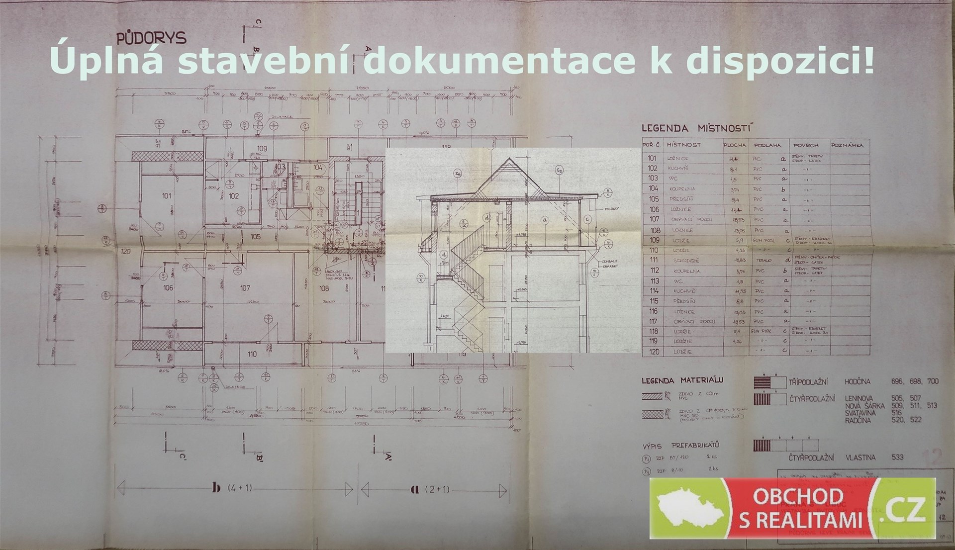 Dispoziční plánek bytu přikládáme, aktuální dispozice bytu je 4+1 s navzájem neprůchozími místnostmi, výměra bytu je 86,3 m2 + součet výměr lodžií 21,5 m2 + zděná sklepní kóje v suterénu domu o výměře 2,7 m2. Nad celou délkou bytu je půdní prostor, který je určený k výlučnému užívání právě pro tento byt (foto půdního prostoru též přikládáme)!