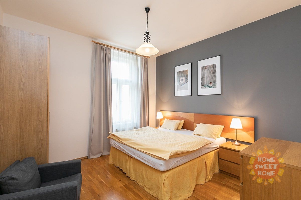Vynikající lokalita v centru Prahy. V okolí je výborná občanská vybavenost. Restaurace, kavárny a obchody všude v okolí. Bohatý kulturní život - divadla a hudební kluby všude v sousedství. Výborná dopravní dostupnost do všech částí Prahy. Zastávka tram nebo stanice metra Náměstí Míru jen pár minut chůze od domu. Možnost pronajmout i na kratší dobu než jeden rok za vyšší cenu.