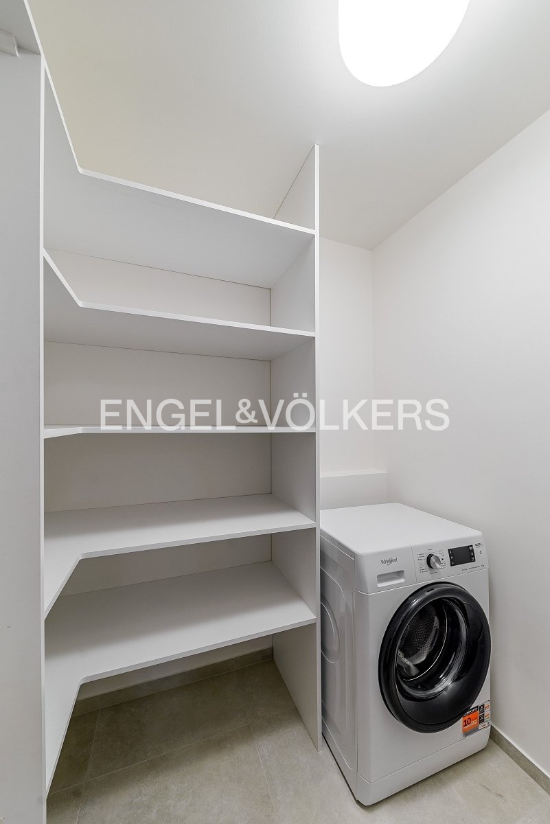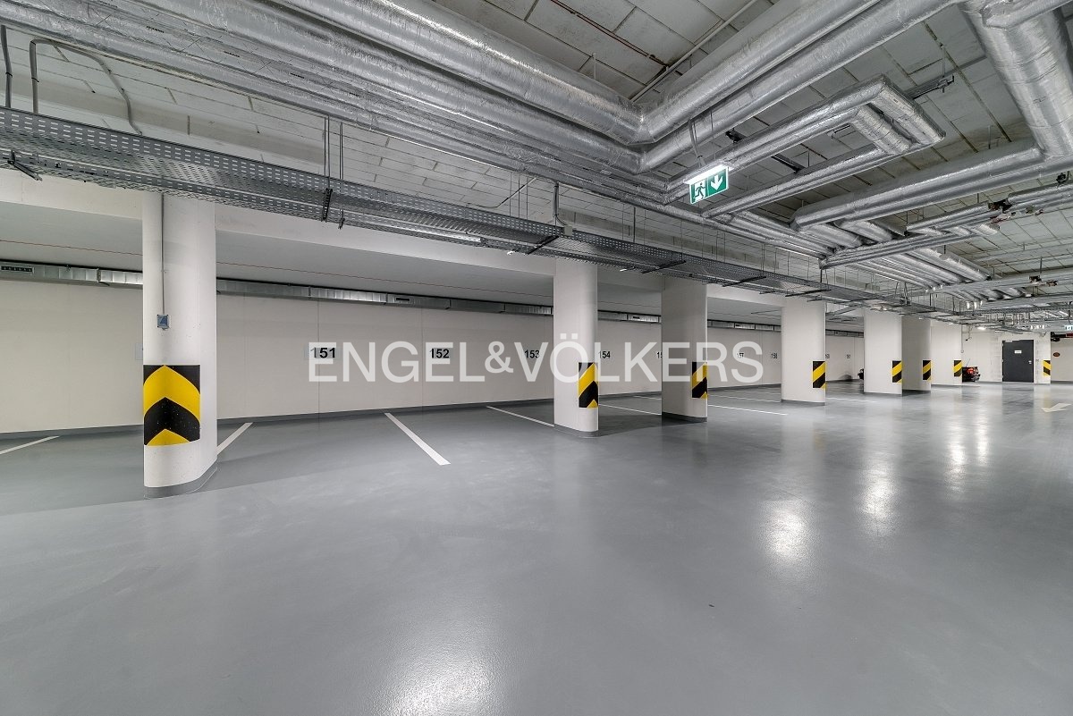K bytu je možné pronajmout parkovací stání v podzemních garážích za cenu 1 500 Kč/měsíc. Poplatky 6 000 Kč zahrnují poplatky na elektřinu a internet.