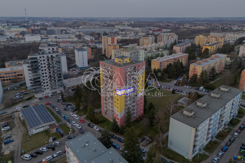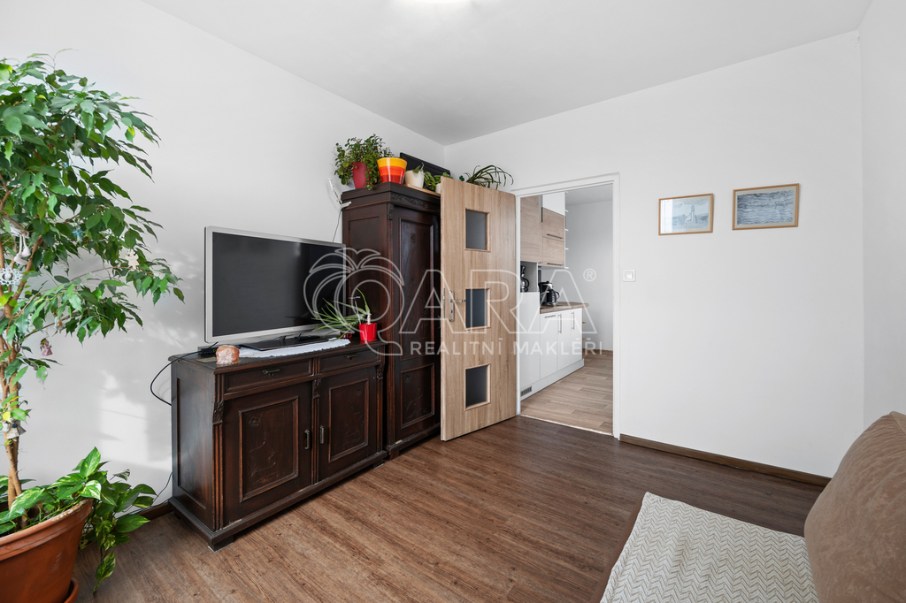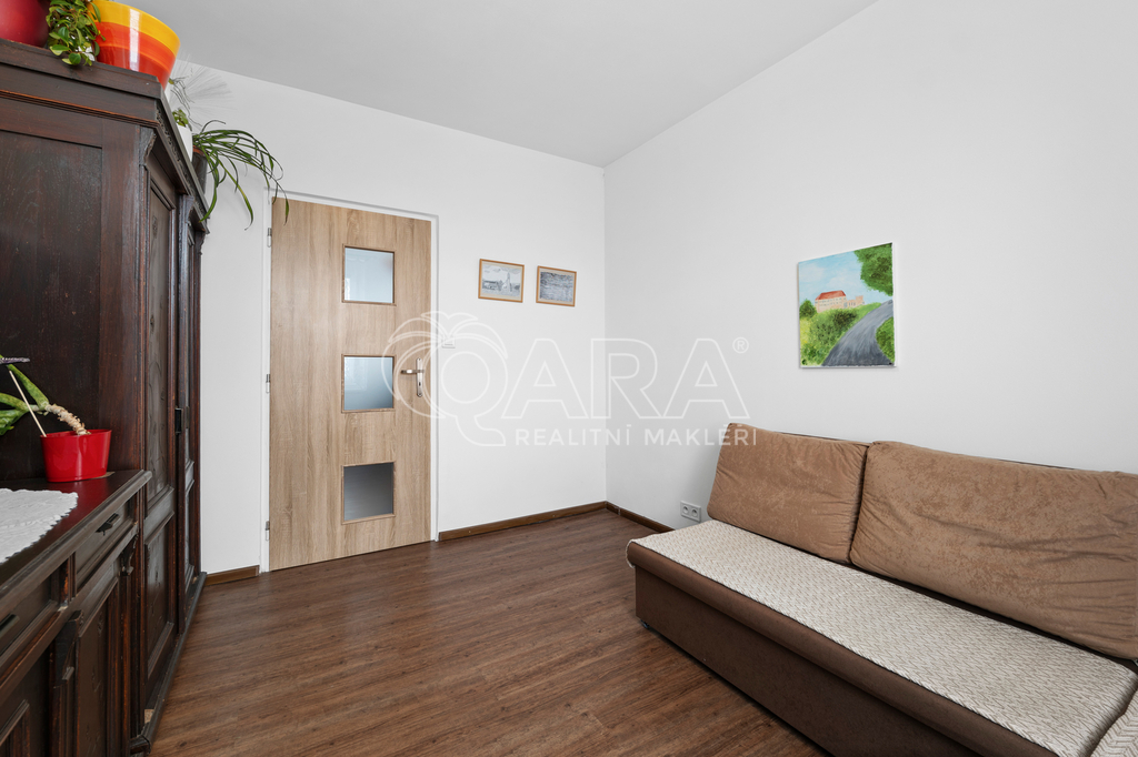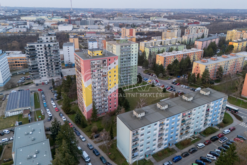 Z kuchyně je přímý vstup na lodžii s příjemným výhledem, stejně jako z většího pokoje. Menší pokoj může sloužit jako ložnice či dětský pokoj. Byt je ve velmi dobrém stavu, který umožňuje okamžité nastěhování. Díky umístění ve vyšším podlaží je zde dostatek světla i ničím nerušený výhled.