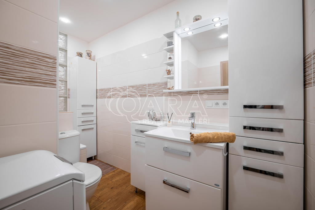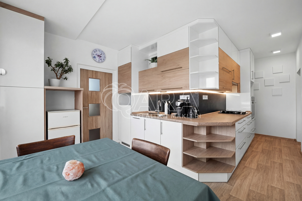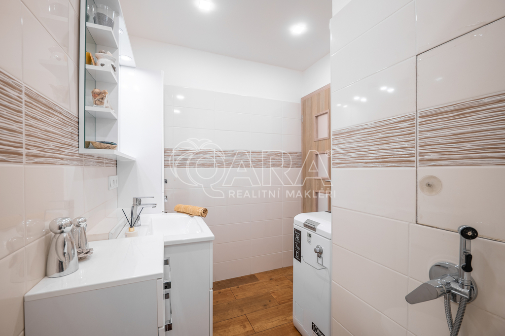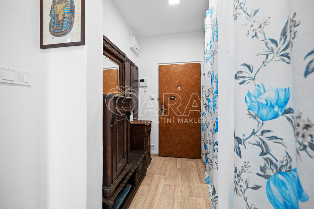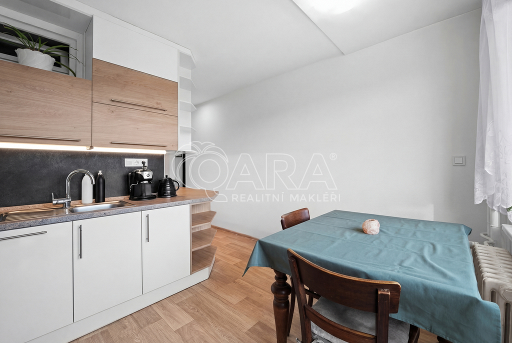 Z kuchyně je přímý vstup na lodžii s příjemným výhledem, stejně jako z většího pokoje. Menší pokoj může sloužit jako ložnice či dětský pokoj. Byt je ve velmi dobrém stavu, který umožňuje okamžité nastěhování. Díky umístění ve vyšším podlaží je zde dostatek světla i ničím nerušený výhled.