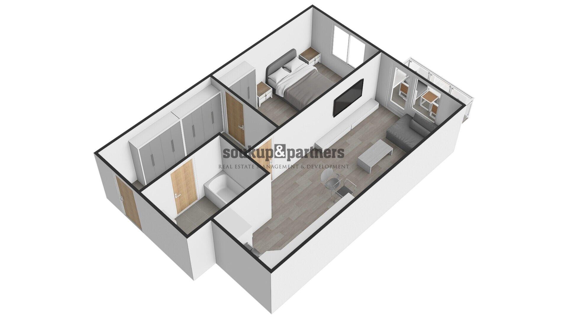 • obývací pokoj s kuchyní na míru a úložným prostorem na míru