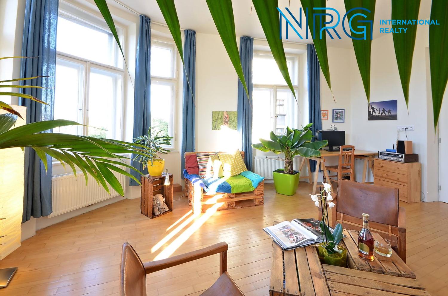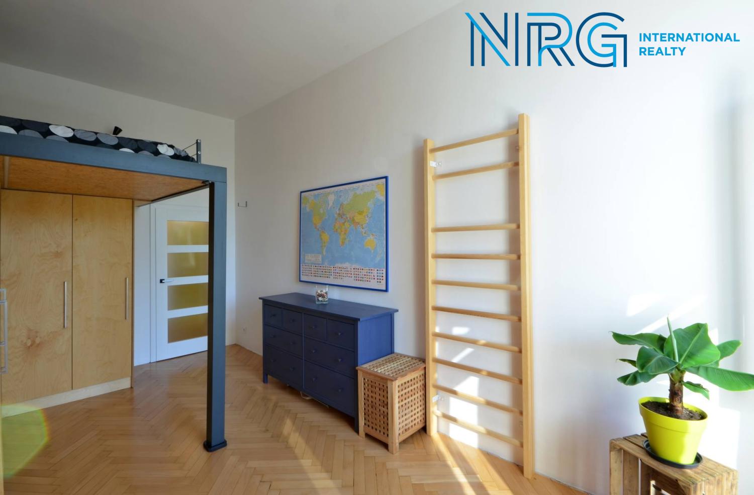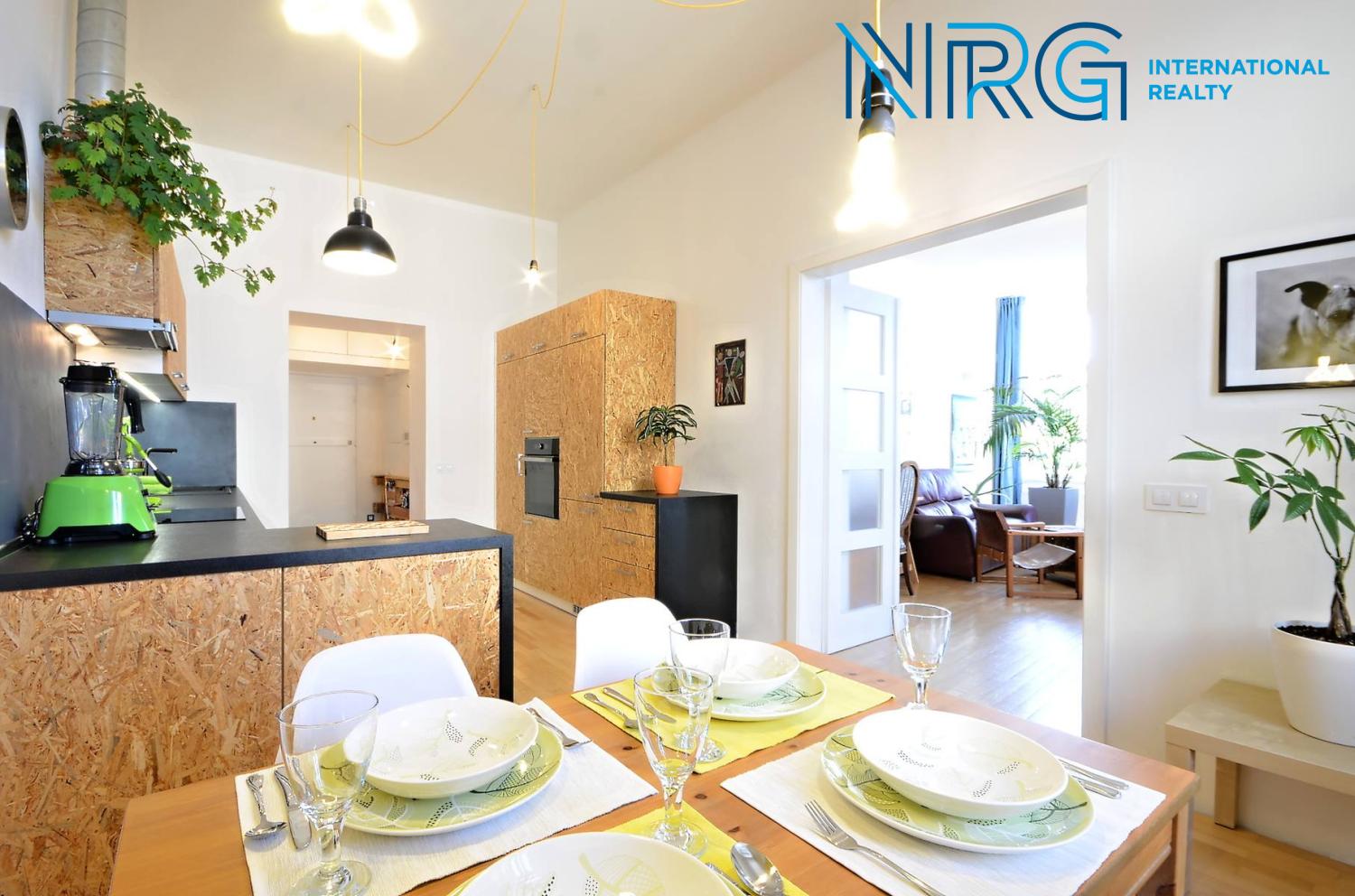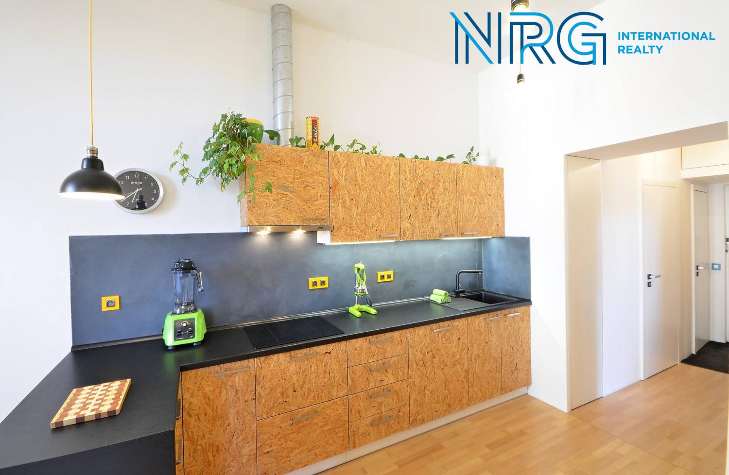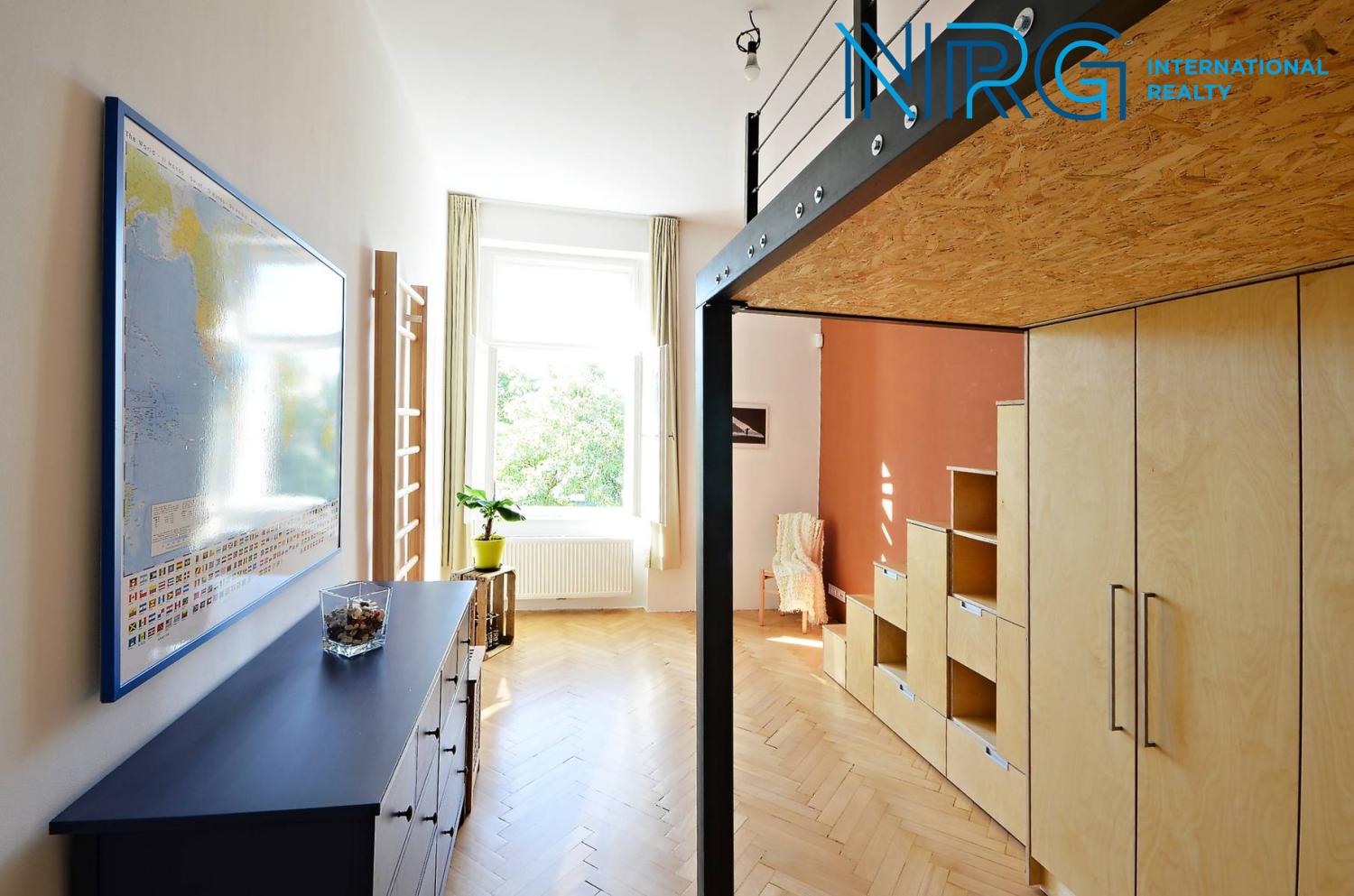 Moderní světlý byt s designovými prvky po pěkné rekonstrukci. Hlavní obývací hala je skvělé prosvětlená, atmosféru dodávají obývací hale velká okna, vysoké stropy a na zakázku vyhotovené dvoukřídlé dveře z masivu. Dále je zde ložnice, kde se velmi chytře pracovalo s prostorem. Postel v patře a vestavěné skříně v prostorech schodů zůstanou v bytě. Je zde velká kuchyň s jídelnou. Kuchyňská linka je na zakázku dle návrhu současných majitelů. Místo standardních dveří byly použity OSB desky, ty jdou samozřejmě jednoduše vyměnit za jiný design. Kuchyňská linka zahrnuje vestavěnou lednici, mrazák, horkovzdušnou troubu, indukční varnou desku, myčku a digestoř s vývodem na střechu. Další zajímavé prvky jsou bezfalcové dveře s designovým kováním do koupelny a WC. V bytě je kompletní a kvalitní rozvod elektřiny, kde v každé místnosti jsou TV i datové zásuvky s moderním designem vypínačů a zásuvek.
