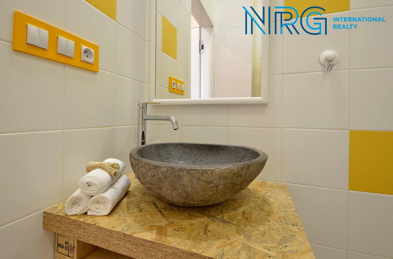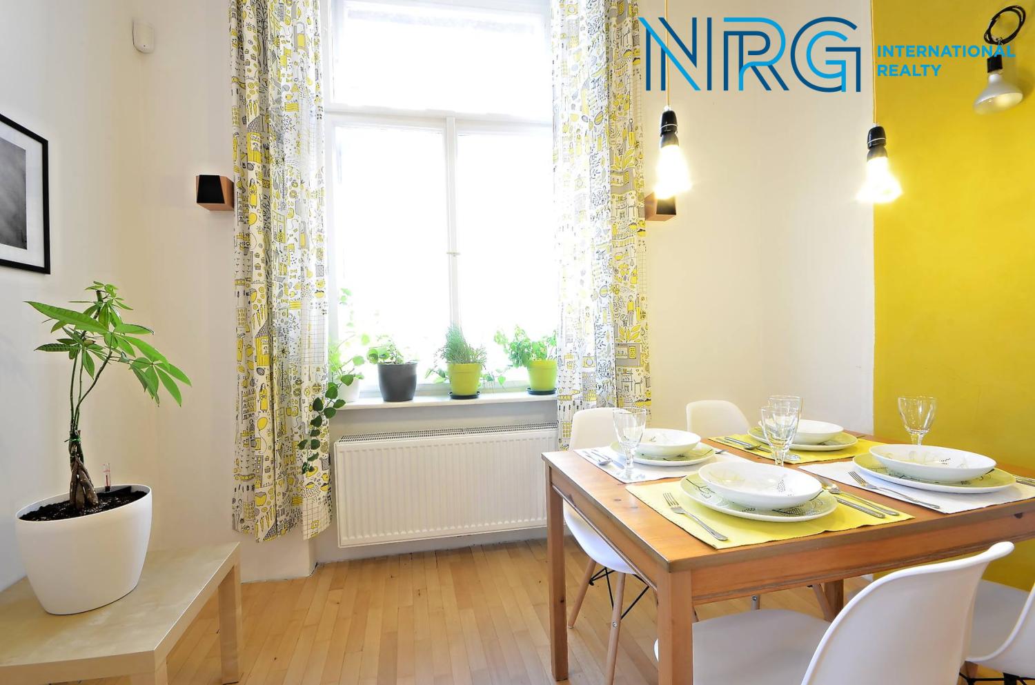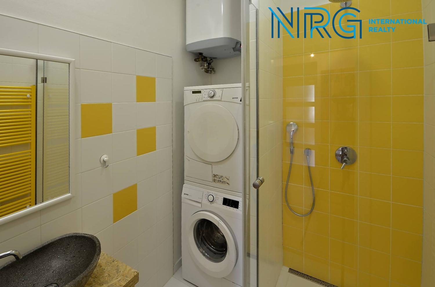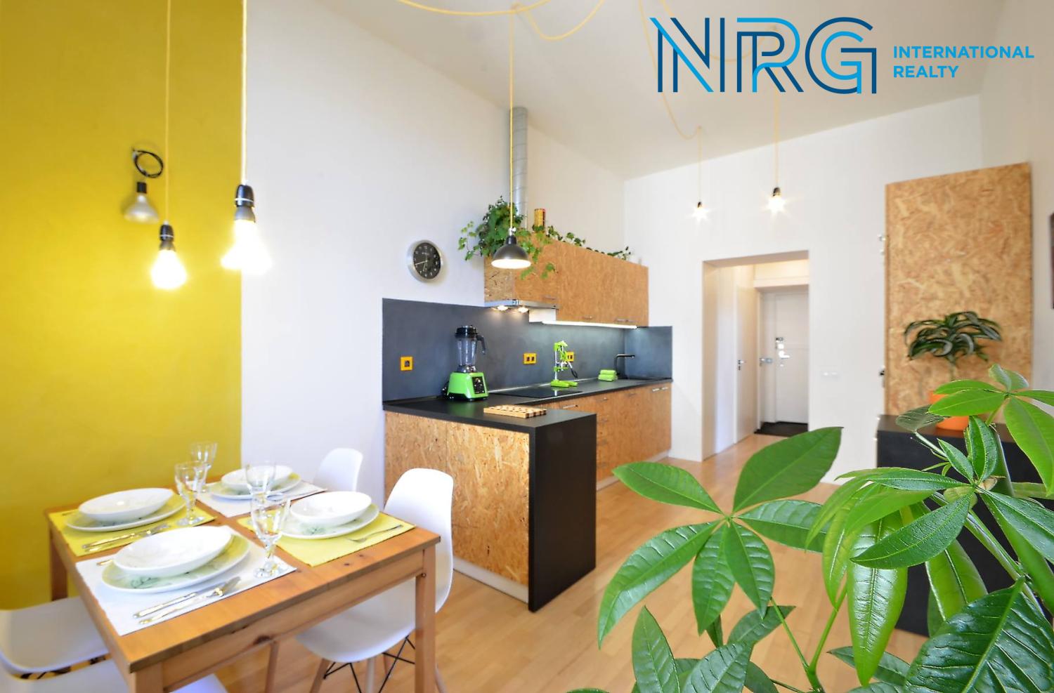 Moderní světlý byt s designovými prvky po pěkné rekonstrukci. Hlavní obývací hala je skvělé prosvětlená, atmosféru dodávají obývací hale velká okna, vysoké stropy a na zakázku vyhotovené dvoukřídlé dveře z masivu. Dále je zde ložnice, kde se velmi chytře pracovalo s prostorem. Postel v patře a vestavěné skříně v prostorech schodů zůstanou v bytě. Je zde velká kuchyň s jídelnou. Kuchyňská linka je na zakázku dle návrhu současných majitelů. Místo standardních dveří byly použity OSB desky, ty jdou samozřejmě jednoduše vyměnit za jiný design. Kuchyňská linka zahrnuje vestavěnou lednici, mrazák, horkovzdušnou troubu, indukční varnou desku, myčku a digestoř s vývodem na střechu. Další zajímavé prvky jsou bezfalcové dveře s designovým kováním do koupelny a WC. V bytě je kompletní a kvalitní rozvod elektřiny, kde v každé místnosti jsou TV i datové zásuvky s moderním designem vypínačů a zásuvek.