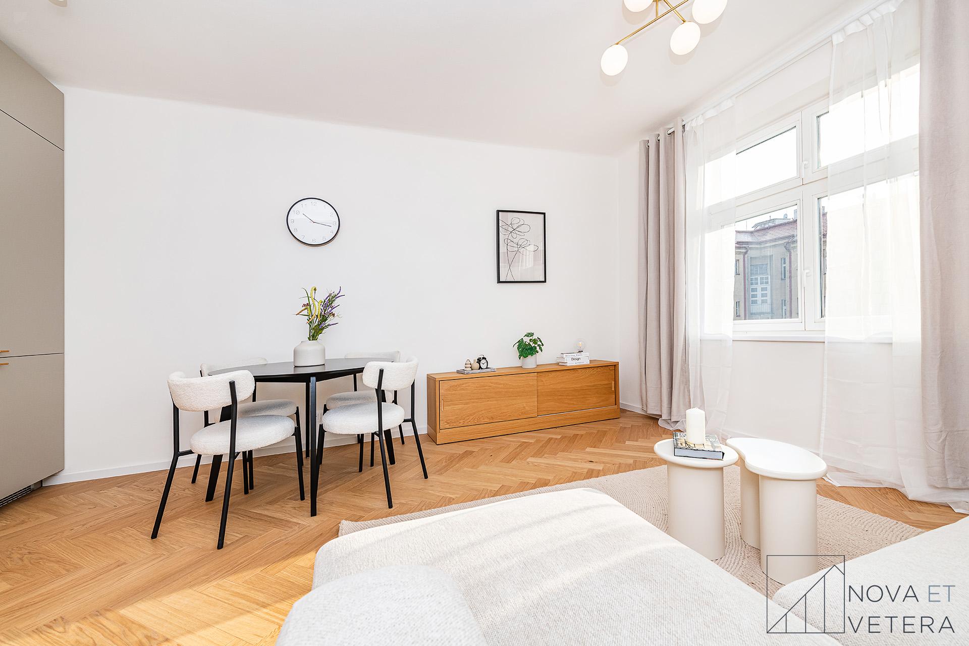 Vzhledem k probíhající rekonstrukci jsou fotografie bytu dočasně ilustrativní a pocházejí z již dokončeného projektu, nicméně odpovídají standardům této rekonstrukce. Rádi vám ukážeme dokončené referenční byty nebo i aktuální průběh rekonstrukce přímo na místě.